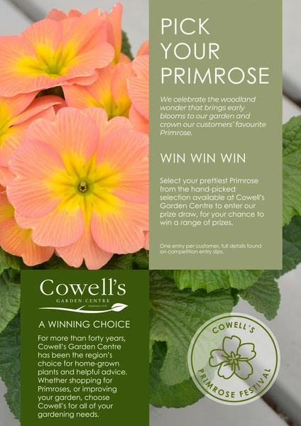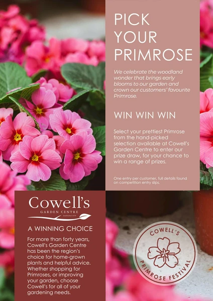 To celebrate, we’re inviting you to vote for your favourite primrose at our ballot station in the bedding area. Every vote is automatically entered into our prize draw, with the chance to win Cowell’s gift vouchers.