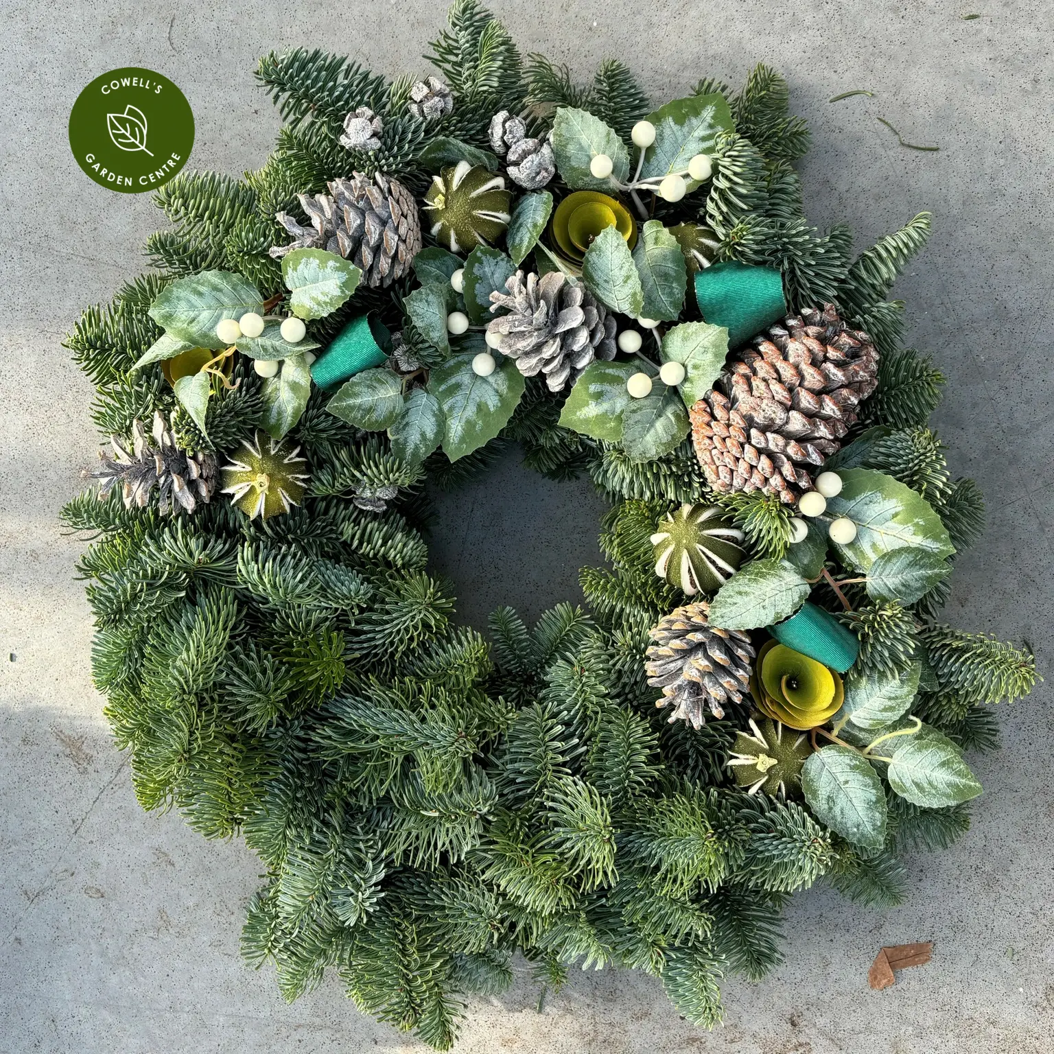 This wreath is made from the finest Noble Fir foliage sourced from sustainably managed British forests.