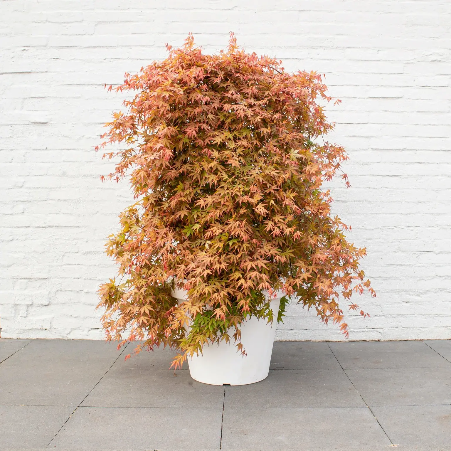 Ideal for adding height variation and contrast in mixed tree and shrub plantings, this refined maple is equally effective as a focal point in borders or large containers. As autumn approaches, the foliage intensifies into brighter shades of red and crimson, delivering a striking seasonal display. Best grown in a sheltered position with well-drained soil and light or dappled shade.