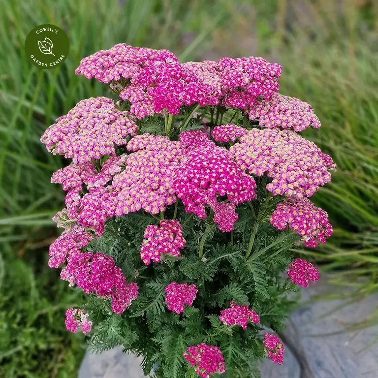 Achillea millefolium Colour Burst 'Rose' is a compact, floriferous perennial producing vivid rose-pink flower heads held neatly above fine, feathery green foliage. Selected for its exceptional flower power and tidy habit, it is ideal for adding long-lasting colour to borders and containers.