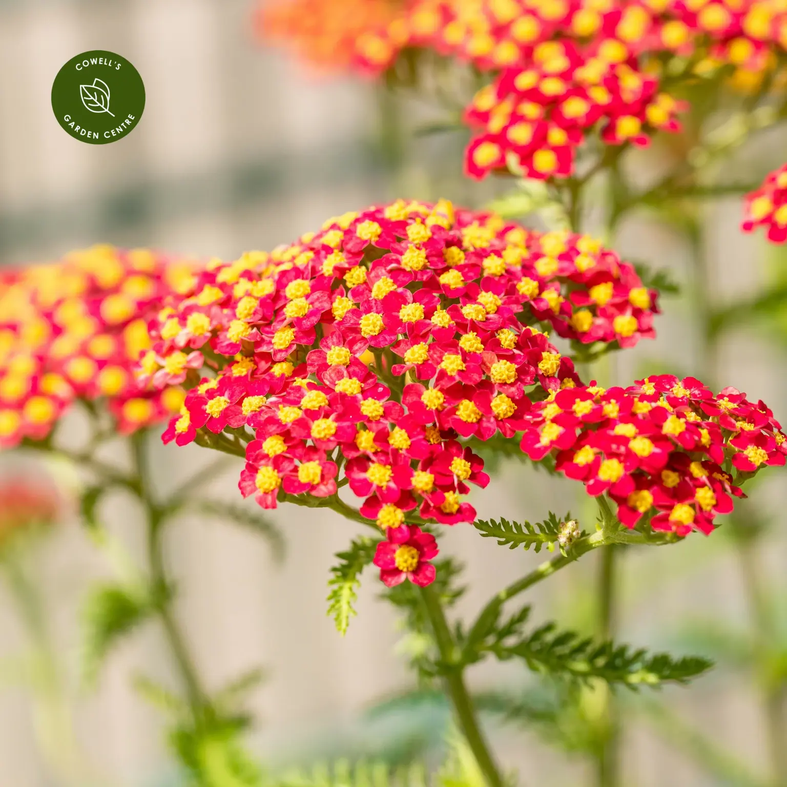 Achillea millefolium 'Paprika' is a vibrant, long-flowering perennial producing flat clusters of rich paprika-red flowers with golden-yellow centres. The blooms gradually soften to warm pink tones as they mature, creating a beautiful colour shift through the season above finely divided, aromatic grey-green foliage.