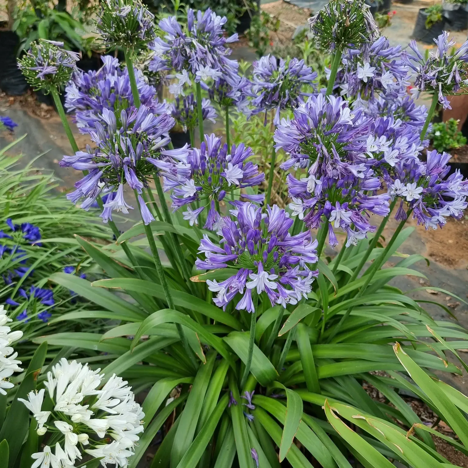 Exceptionally floriferous, this variety produces dense, rounded flower heads packed with blooms over a long flowering season, with modest re-blooming extending its display beyond most agapanthus varieties. Medium-compact and semi-evergreen, ‘Midnight Moon’ is heat and drought tolerant with excellent disease resistance, making it a resilient and versatile choice for borders, containers, patios, coastal gardens and gravel plantings. Best grown in full sun and well-drained soil, with winter protection in colder areas.
