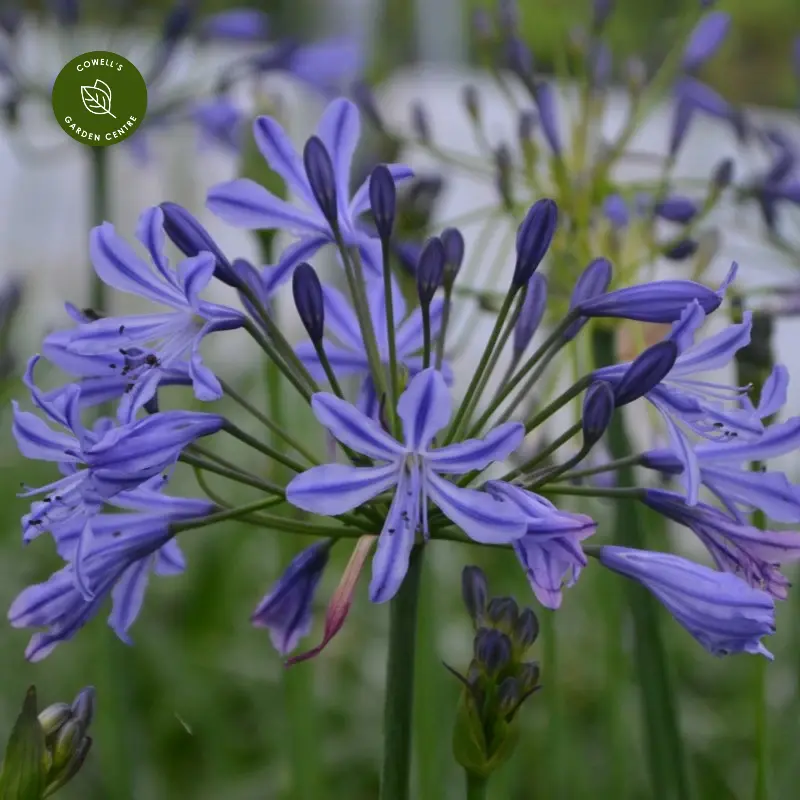 Agapanthus 'Su Casa' is a compact, evergreen African lily producing an abundance of rich blue flower heads over an exceptionally long season. Selected for its vigorous performance and early flowering habit, it quickly establishes and begins producing multiple flower stems from a young age.