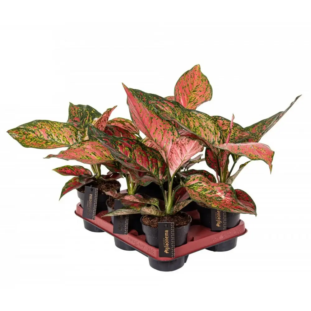 Aglaonema ‘Coral Red’ is a bold and eye-catching Chinese evergreen with broad, ovate leaves richly speckled in shades of coral red, pink, and green. Each leaf is framed by deep green edging, creating strong contrast and a vibrant, painterly effect that instantly lifts indoor spaces.