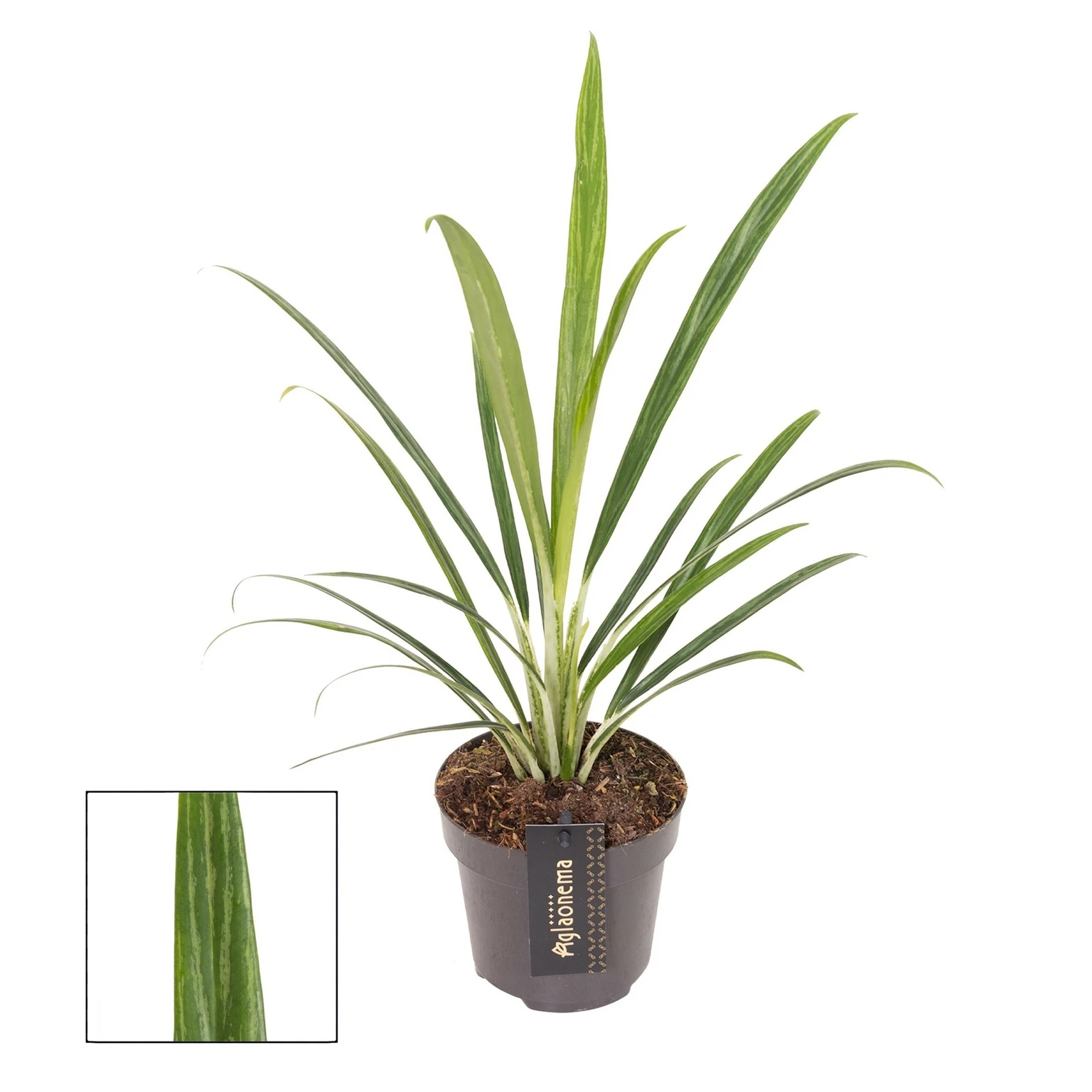 Aglaonema ‘Forest Grass’ is an elegant Chinese evergreen with long, slender leaves patterned in layered shades of deep green, soft silver, and gentle lime tones. The fine, grass-like foliage gives it a light, flowing appearance, making it an excellent choice for adding texture and movement to indoor plant displays.