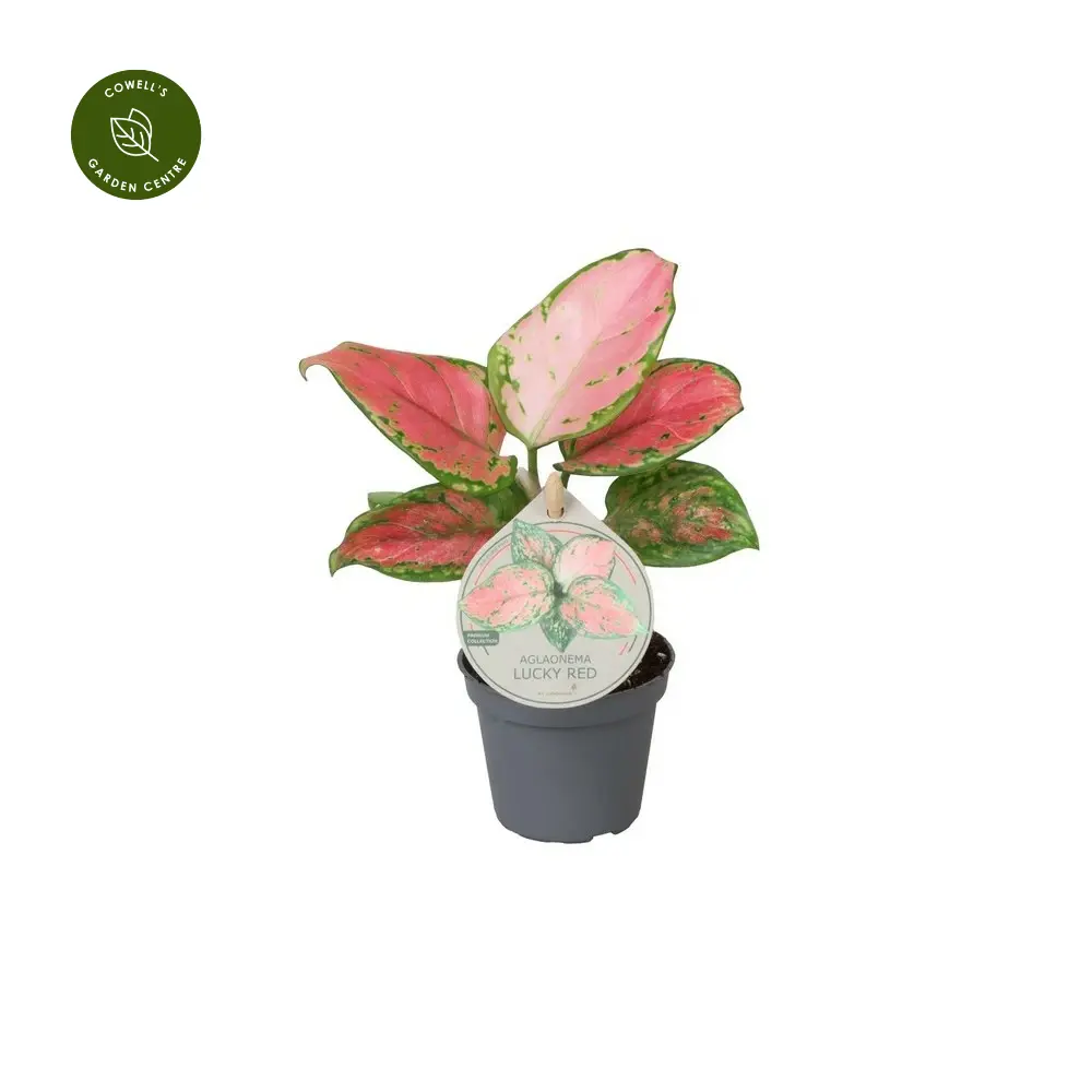 Aglaonema ‘Lucky Red’ is a bold and colourful foliage houseplant with glossy green leaves splashed and edged with vibrant red tones. The rich contrast between deep green and vivid red creates a striking, tropical look, making it a standout feature in any indoor plant display.