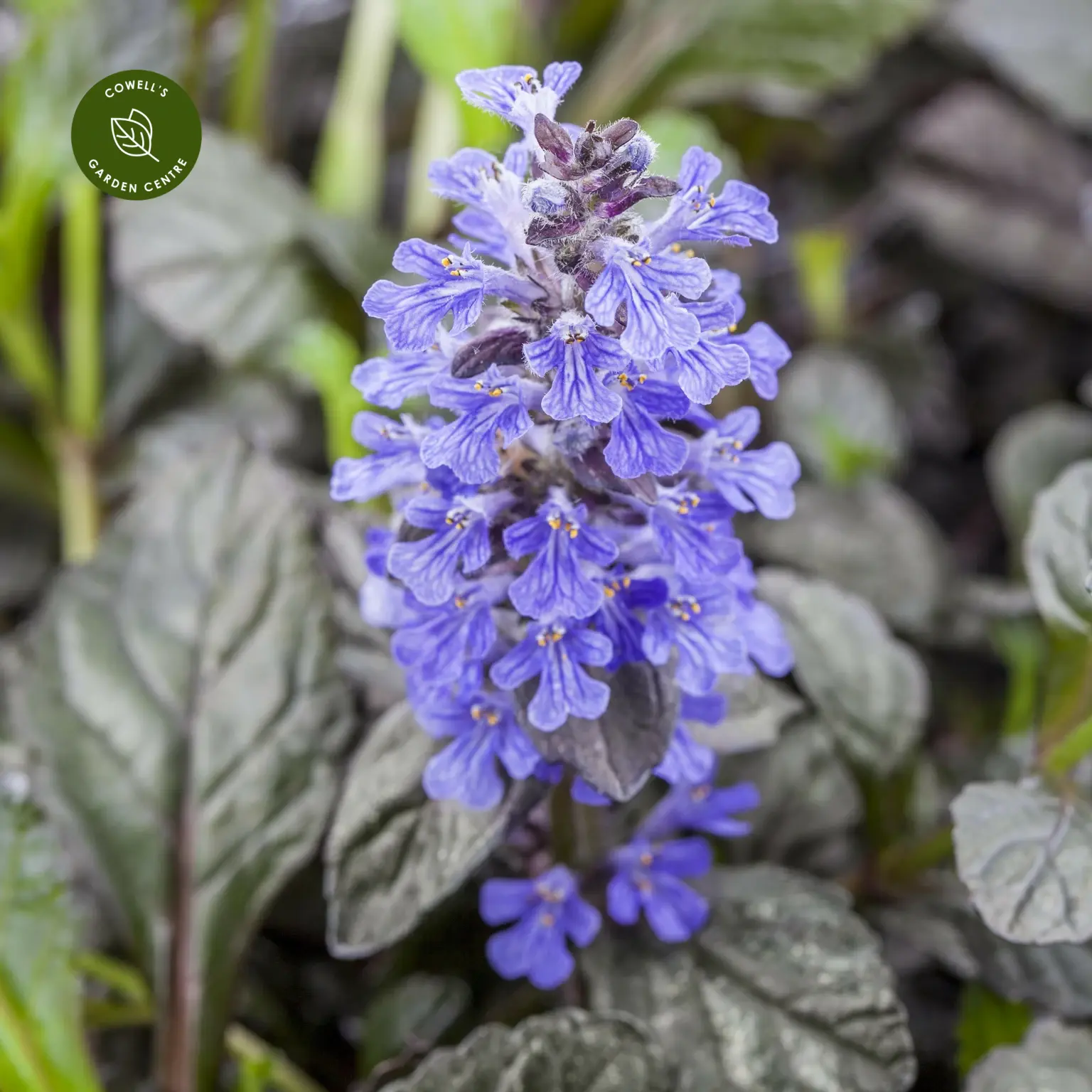 In spring, upright spikes of deep blue flowers rise above the foliage, creating a striking contrast against the dark leaves. Ideal for shady borders, rockeries, banks and containers, this hardy and easy-to-grow variety is perfect for filling gaps and softening edges.