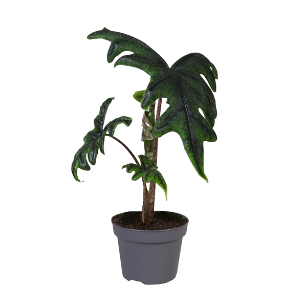 Alocasia ‘Jacklyn’ is a rare and highly sought-after variety with deeply lobed, arrow-shaped foliage featuring textural green colouring and bold, dark green veining. The leaf surface has a tactile, patterned finish that adds to its sculptural, almost prehistoric appearance. A true collector’s specimen that brings dramatic, exotic character to any interior.