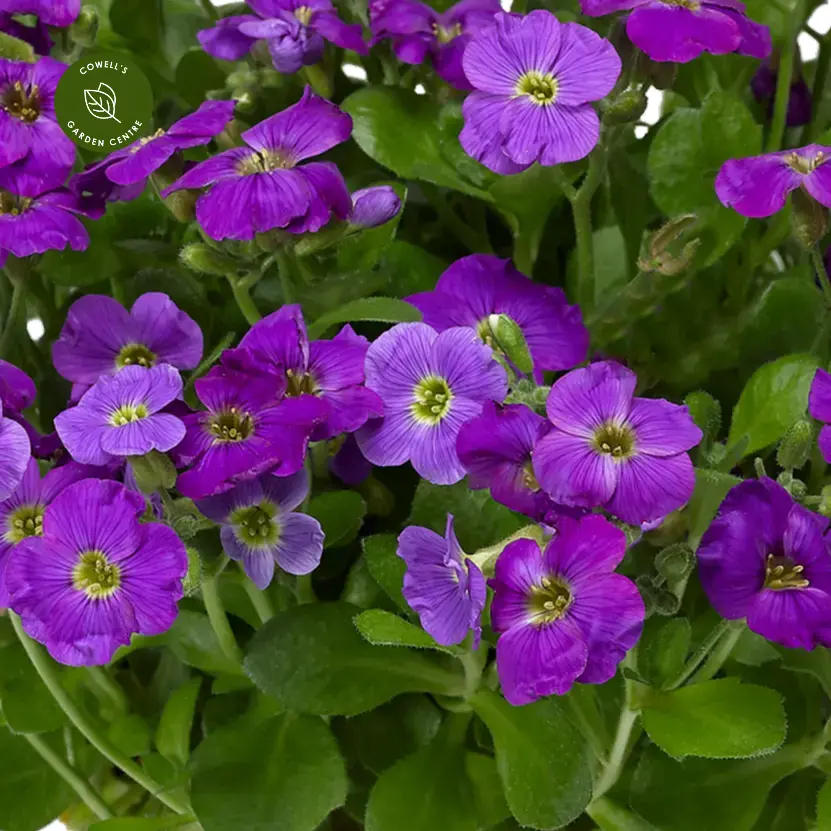 Aubrieta 'Glacier Violet' is a low-growing, evergreen perennial valued for its masses of vivid violet-purple flowers in spring. Forming a dense, spreading mat, it is ideal for softening edges and spilling gracefully over walls, rockeries and raised beds.