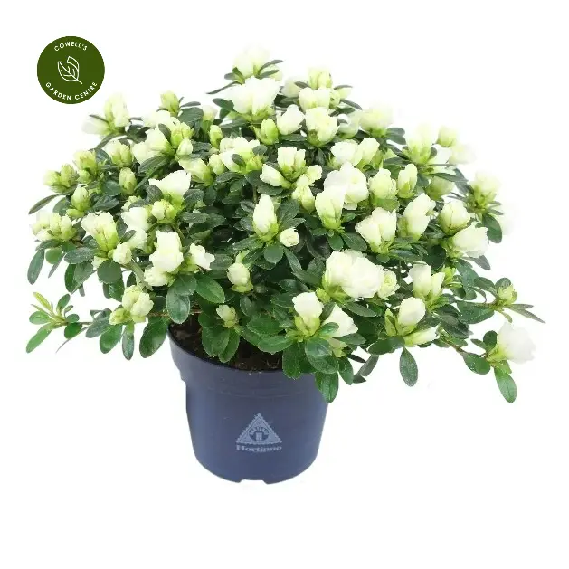 Azalea Hortinno ‘Noralinde White’ is a beautiful indoor azalea producing masses of pure white blooms that create a fresh, elegant display. The crisp flowers sit above glossy dark green foliage, offering a classic contrast that brightens any indoor space.
