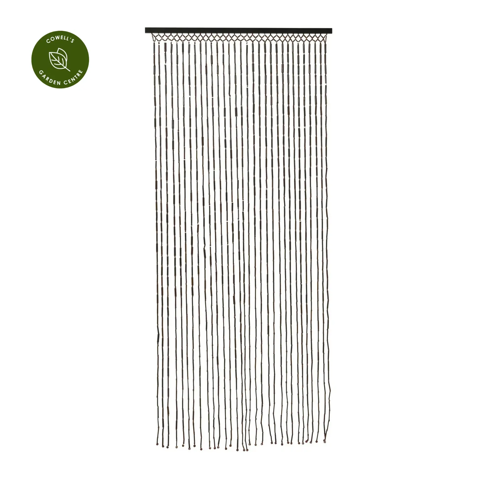 A handmade bamboo bead door curtain in a deep dark brown finish, designed to add texture and relaxed, natural style while gently dividing indoor spaces.