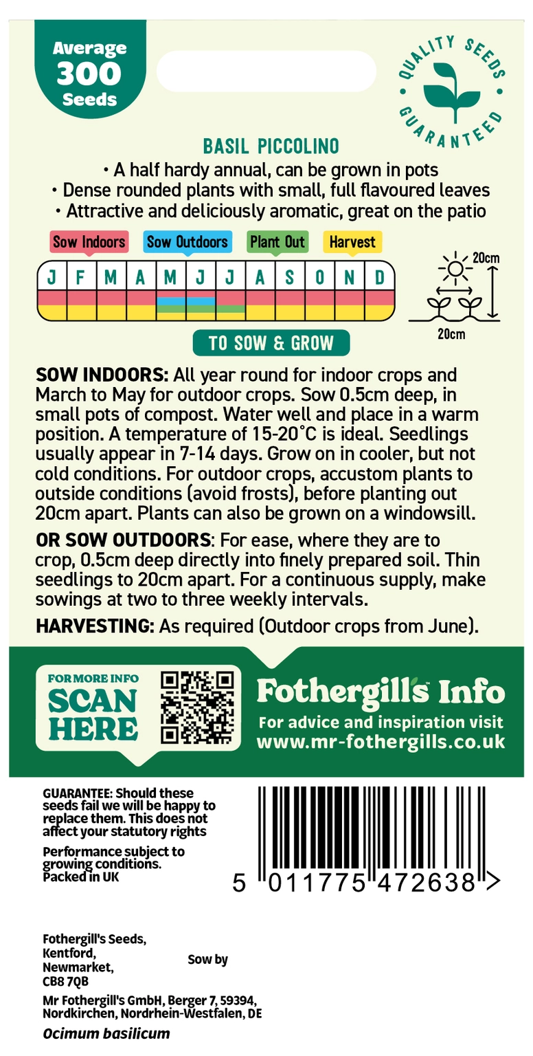 Compact and bushy, great in pots. For maximum flavour leaves should be added to cooked dishes at the last minute. Remove flowers to prolong picking.