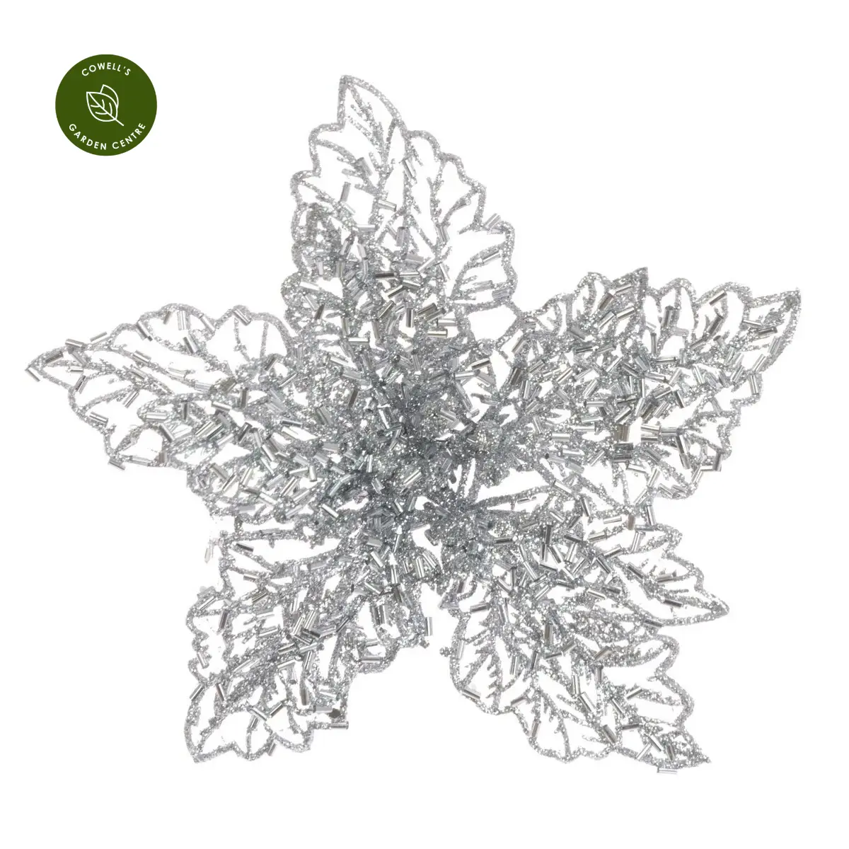 Write a review about "Beaded Poinsettia Tree Clip - Silver"