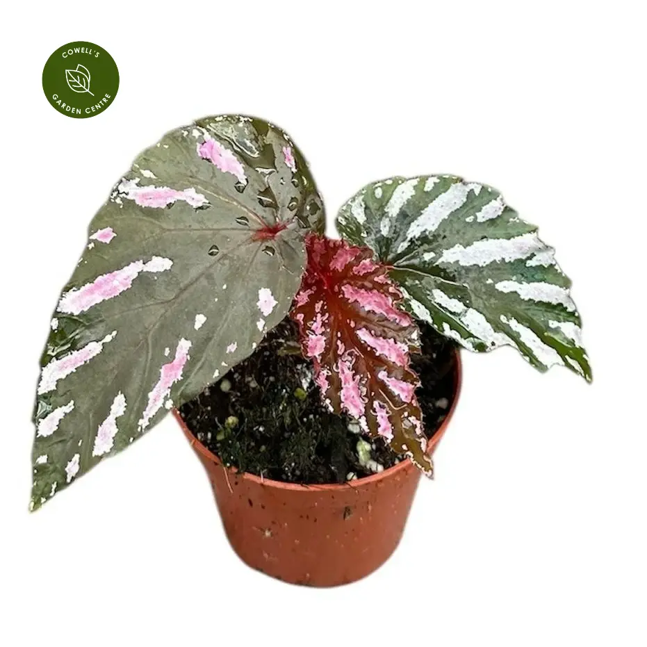 With its vibrant variegation and upright growth, this Begonia performs best in bright, humid rooms such as kitchens or conservatories. It thrives in consistent warmth and filtered light, producing bold, textured foliage that makes a stunning statement throughout the year.