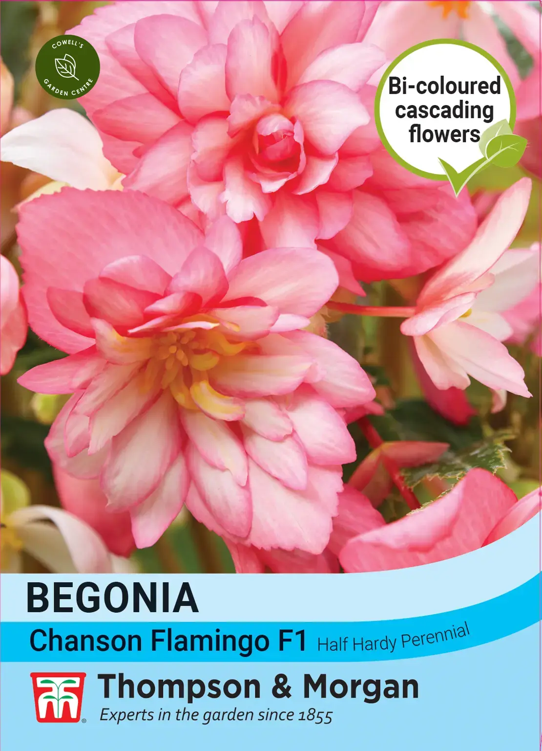 Begonia ‘Chanson Flamingo’ boasts large, bicoloured soft pink and white flowers that cascade over the sides of hanging baskets and containers in a waterfall of colour. Begonia ‘Chanson Flamingo’ is a trailing begonia that delivers a stunning garden performance from summer until the first frosts.