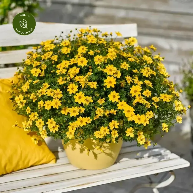 Bidens is a vibrant, free-flowering bedding plant known for its masses of bright, daisy-like blooms that provide continuous colour throughout the summer months. Its cheerful flowers create a lively display.