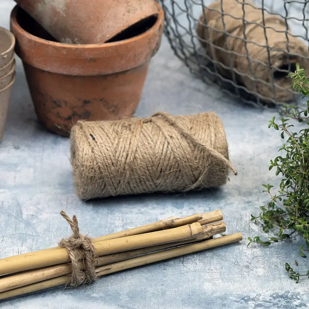 Spool of soft biodegradable jute twine, for tying in growing plants.