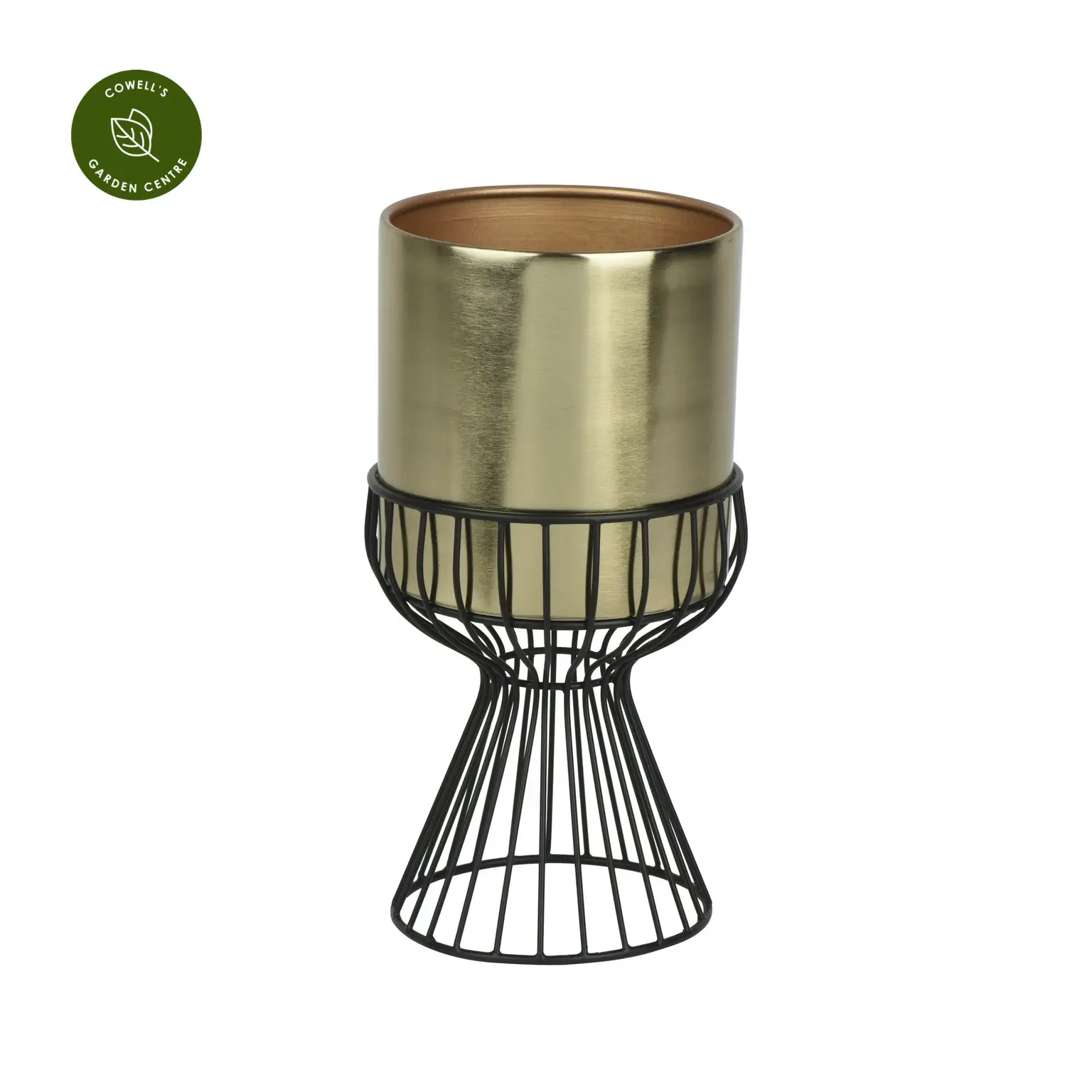 - Gold iron planter with contrasting black metal stand