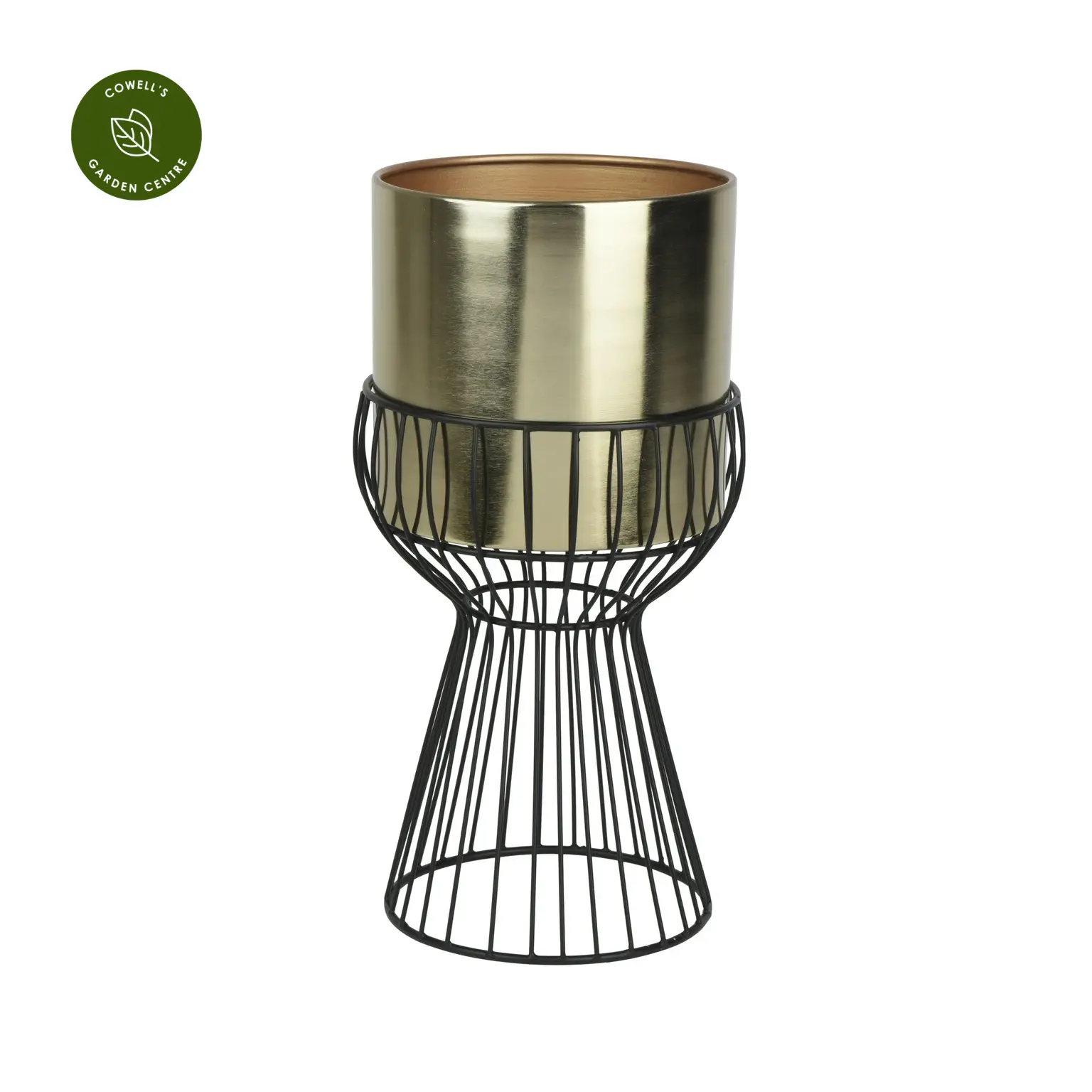 - Gold iron planter with contrasting black metal stand