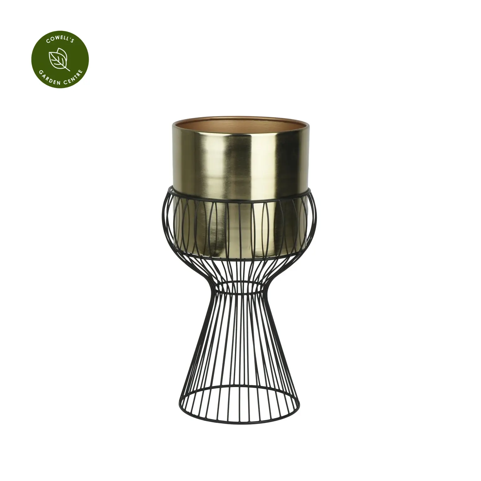 - Gold iron planter with contrasting black metal stand