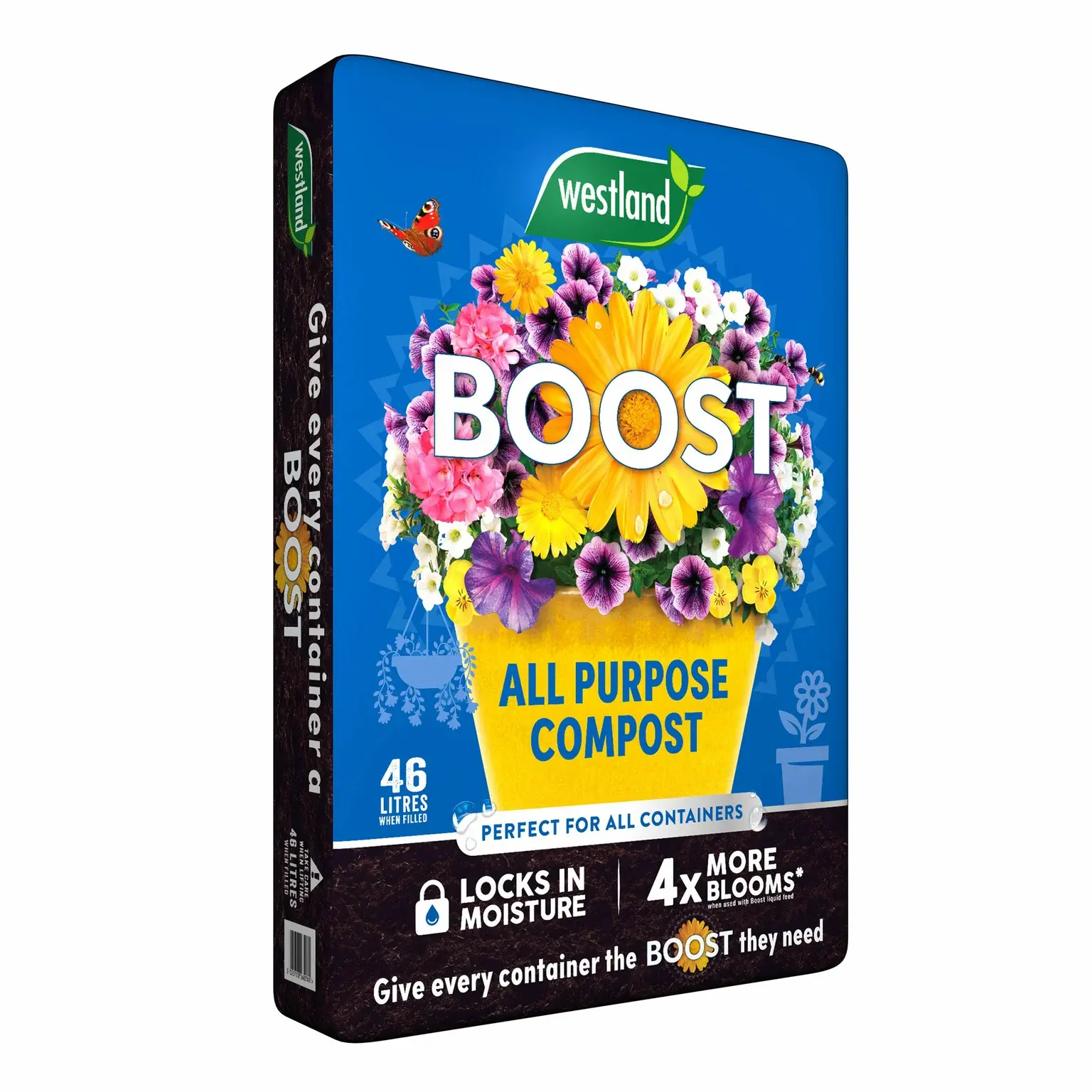 Westland Boost All Purpose Container Compost is our unique, specially blended compost to support the health of container plants. Peat free, enriched with starter feed and with our moisture lock technology it makes watering more effective and easier too. This compost is perfect for all containers and baskets, giving them the boost they need for stunning, vibrant floral displays.