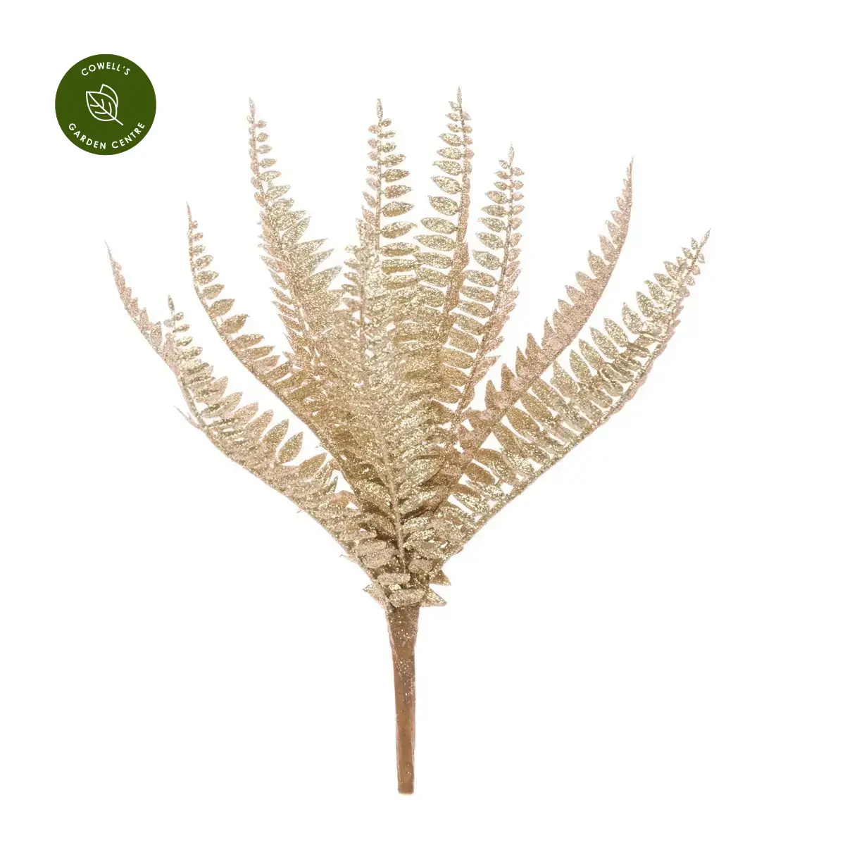 Glittering artificial fern spray, ideal for enhancing a festive arrangement or adding into your Christmas tree for next level decor.