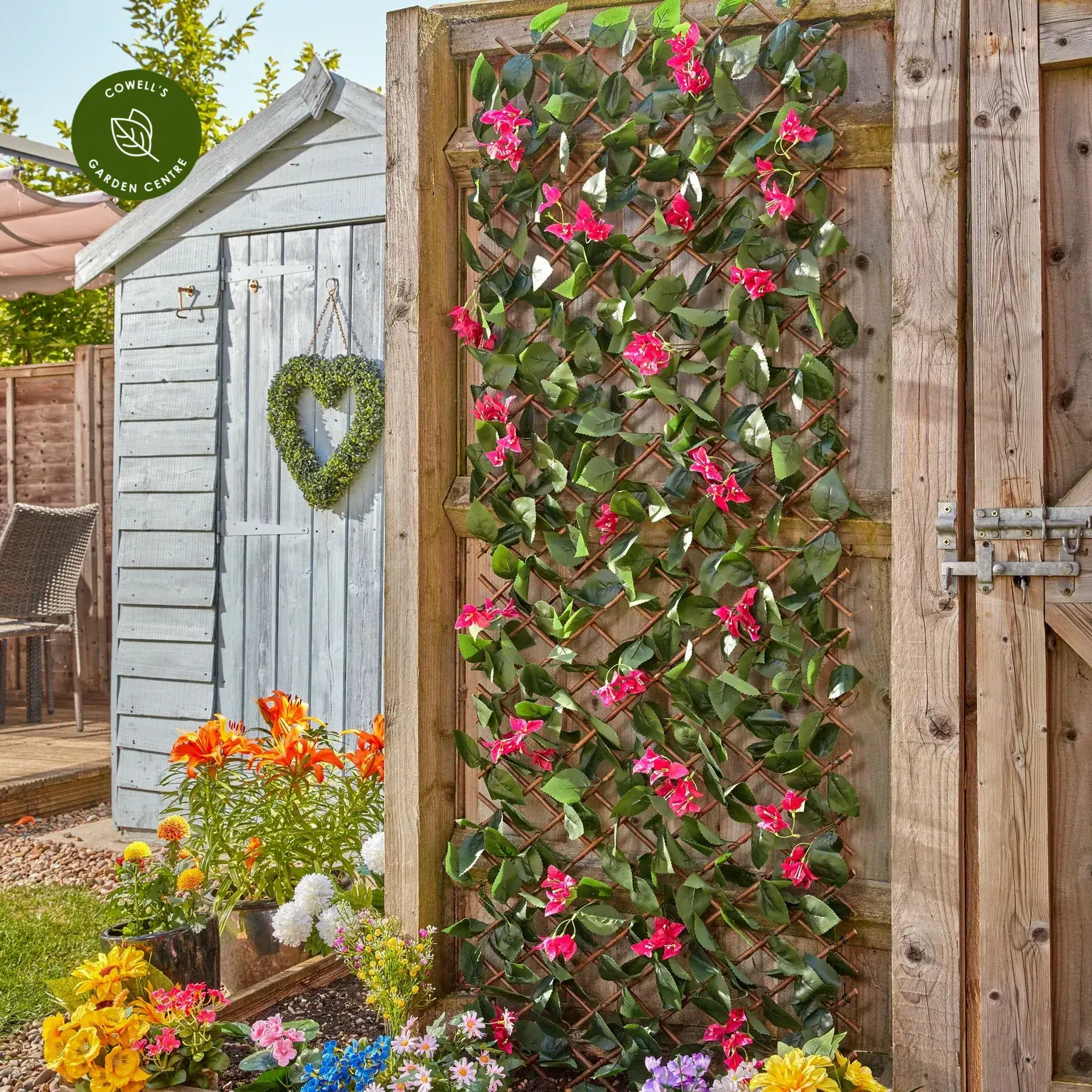 Add instant colour, privacy and structure to your garden with this maintenance-free artificial trellis. Designed with realistic bougainvillea-style foliage on a natural willow expandable frame, it’s an easy way to soften walls, fences or balconies without any upkeep.