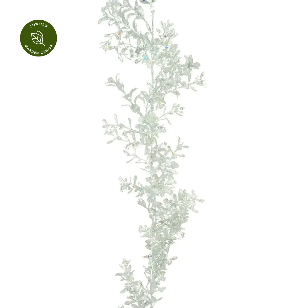 Glittering boxwood garland in shimmering silver, for elevating your Christmas decoration.