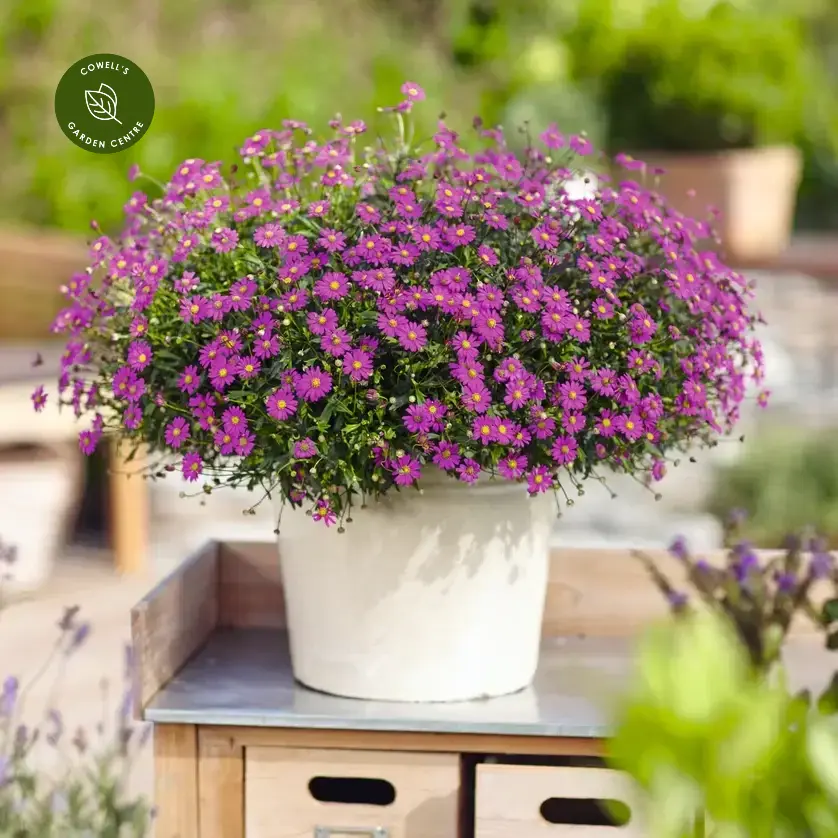 Brachyscome, commonly known as Swan River Daisy, is a delicate and free-flowering plant producing masses of small daisy-like blooms. Its fine, airy foliage creates a soft, natural look perfect for summer displays.