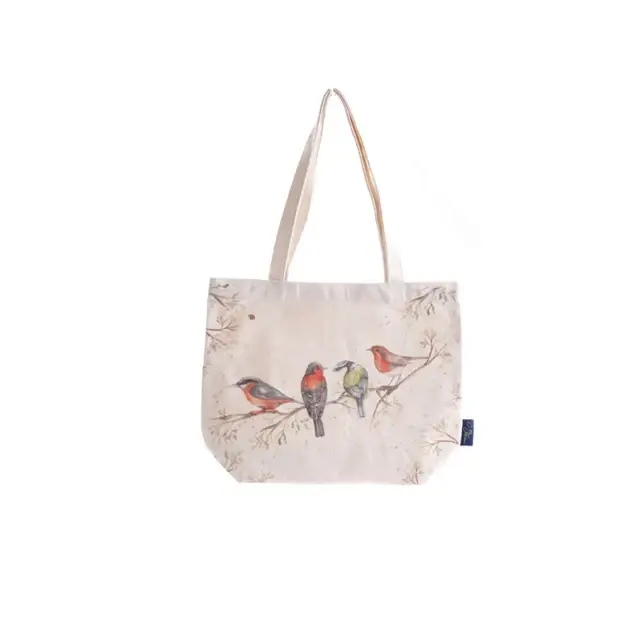 100% cotton tote bag featuring a watercolour design of colourful British garden birds. Lightweight but strong, and easy to fold into your handbag.