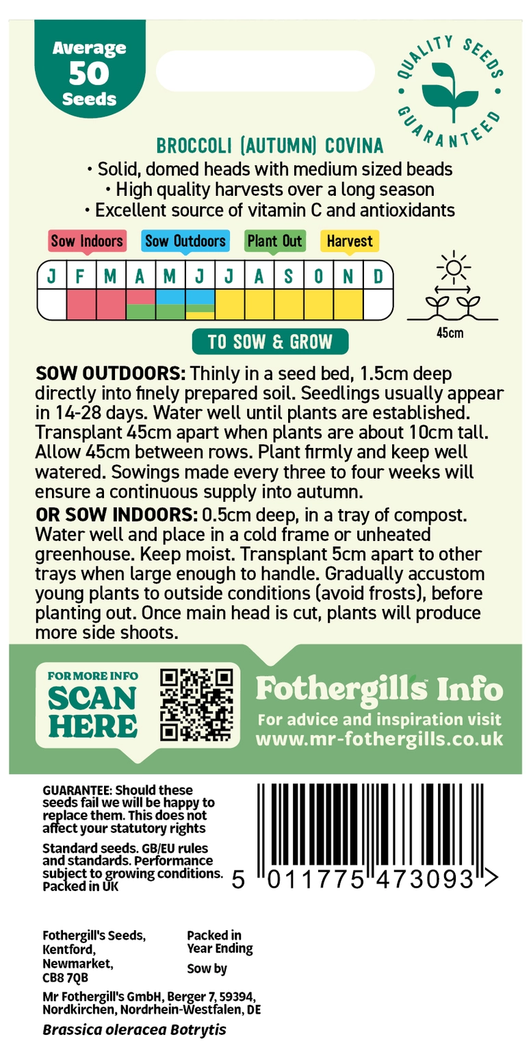 Generous harvests over a long season. Cut the shoots when 15cm long. Harvest regularly to encourage further shoots. 100g of broccoli provides the daily requirement of vitamin C.