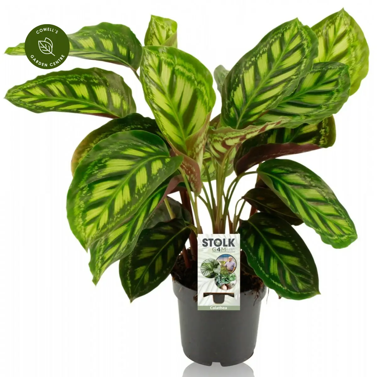 Calathea 'Moonlight' is a stunning foliage plant with large, rounded leaves in light green, contrasted by darker green edges with fine pink undertones. Its glossy leaves catch the light beautifully, creating a striking display. As a member of the prayer plant family, the leaves may gently move, lifting in the evening and relaxing in the morning. Large leaves mean this is an excellent air purifying plant.