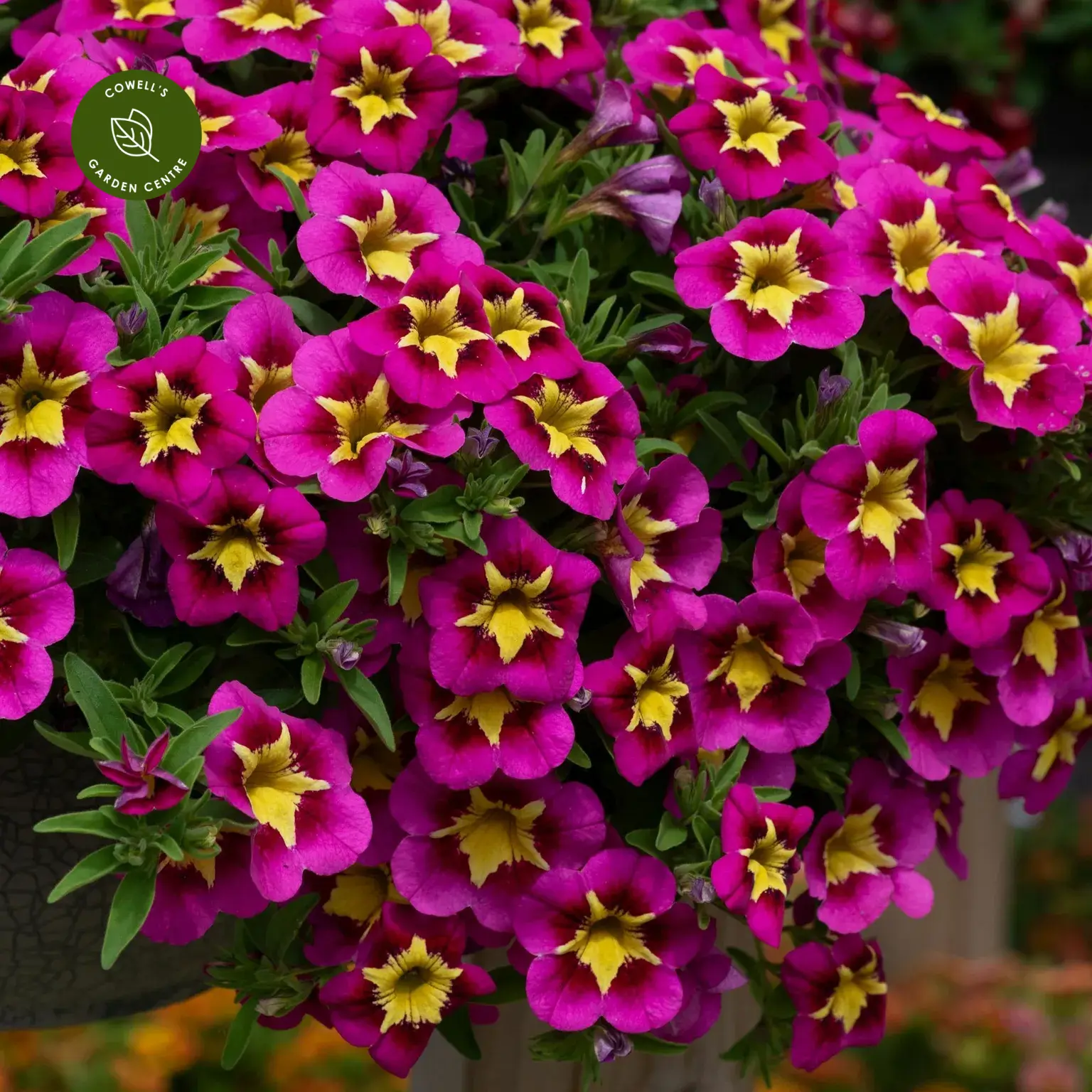 Calibrachoa Cabaret® Series is a popular range of compact, free-flowering trailing plants producing masses of small, petunia-like blooms. Known for their reliability and uniform growth, they create a full and consistent display throughout the season.