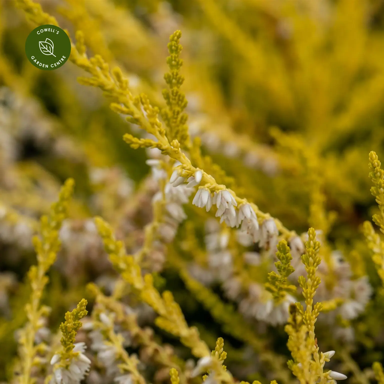 - Evergreen heather with vibrant golden foliage