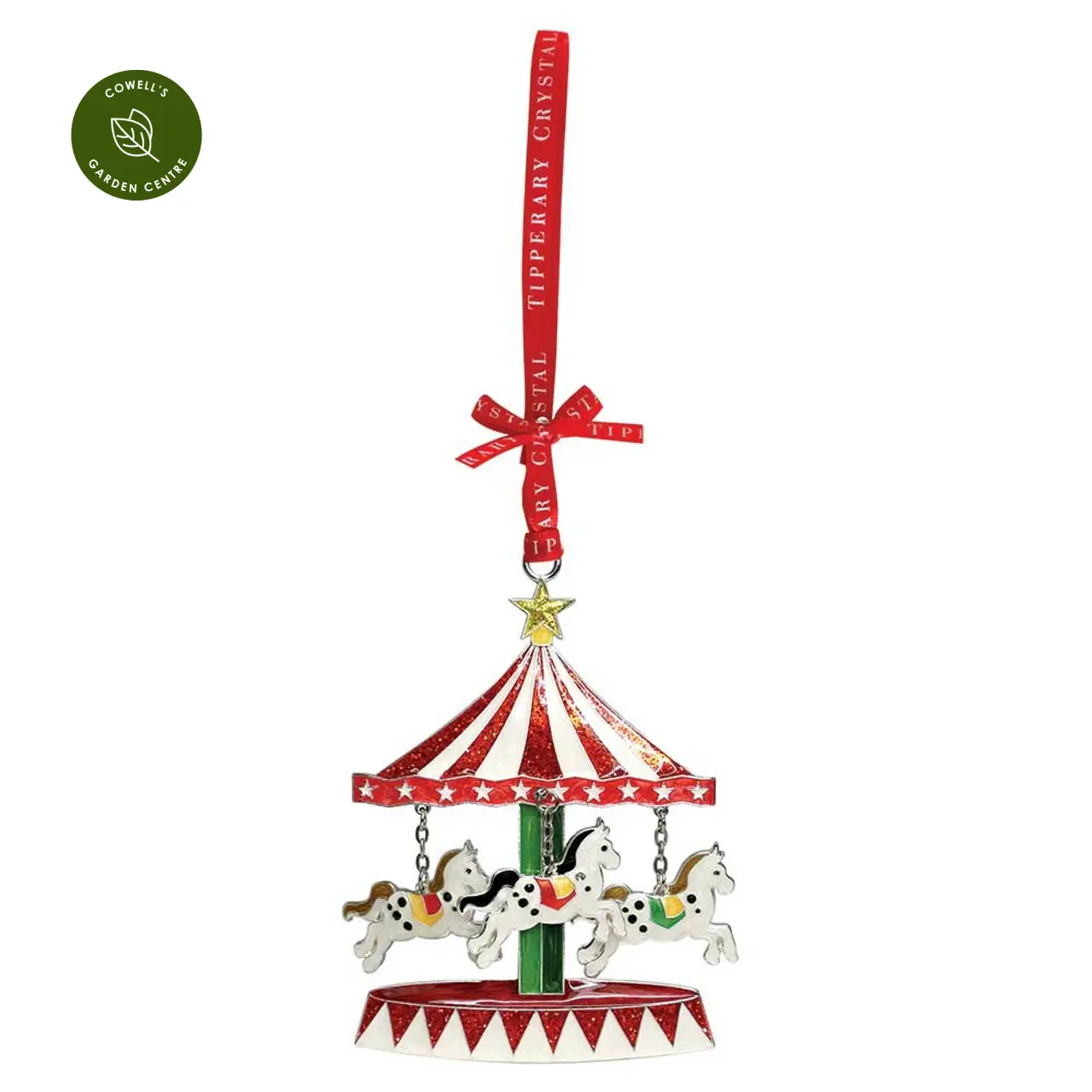 Bring festive sparkle to your tree with the Carousel Decoration. Featuring a traditional carousel with three horses, It’s presented in a star-shaped gift box and finished with a branded hanging ribbon.