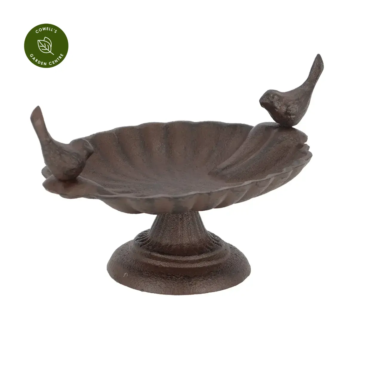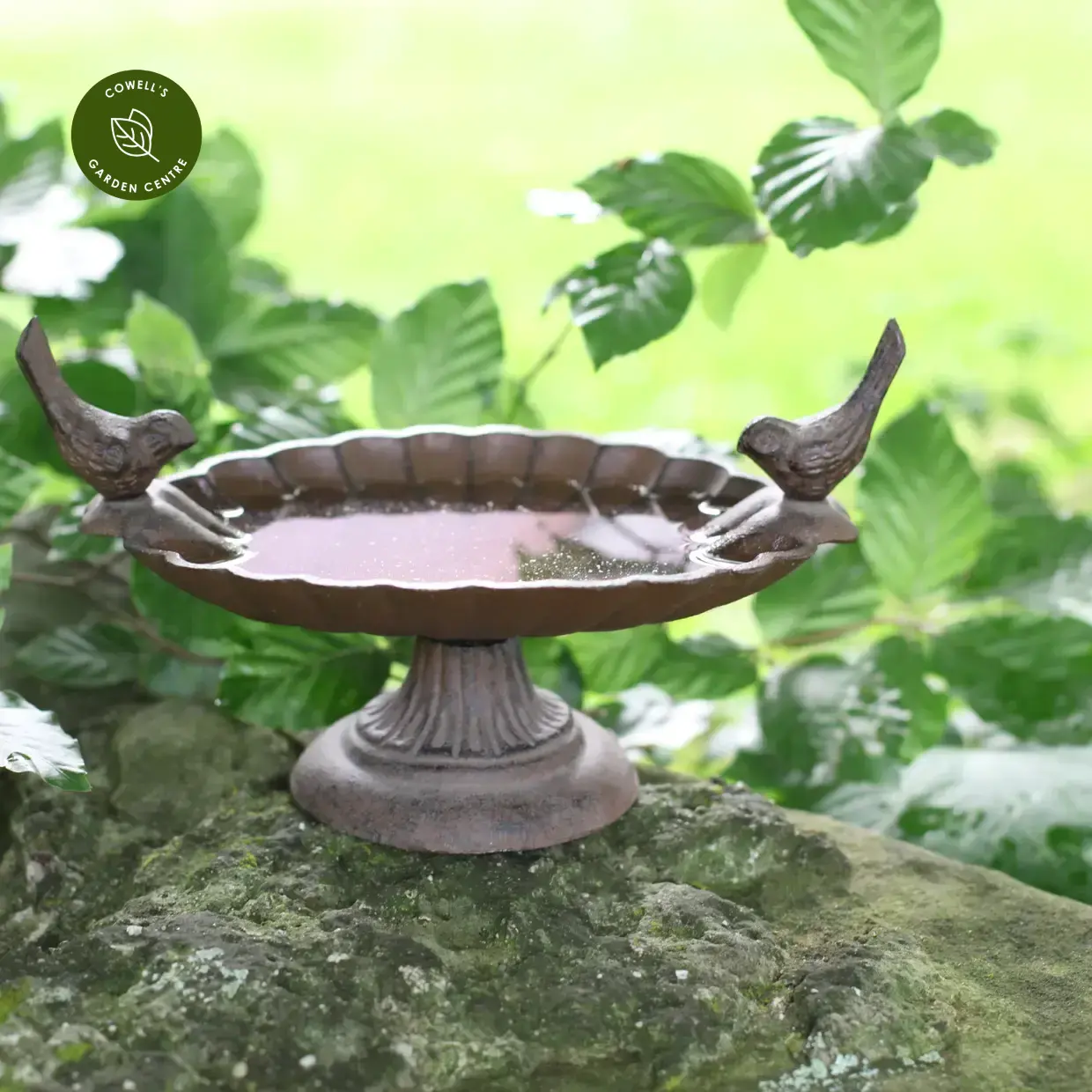 Featuring two decorative birds perched on the rim, it adds charm and interest to any garden setting. Versatile in use, it can also be used as a feed tray to attract a variety of visiting birds.