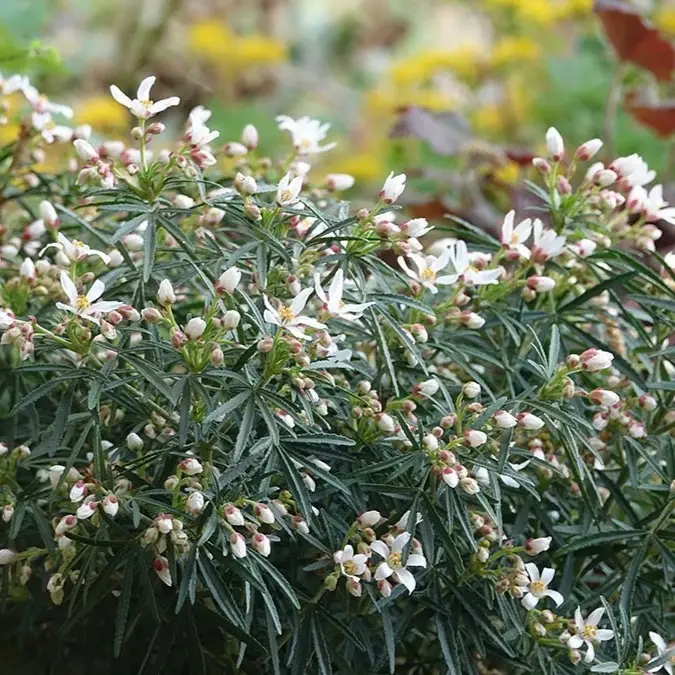The finely cut leaves are particularly striking in full sun, releasing a light citrus scent when brushed. In late spring, clusters of starry white flowers appear, often followed by a second flush in autumn. Ideal for low hedging, borders, patio containers and smaller gardens, ‘Little Bee’ is easy to grow, low maintenance and highly attractive to bees and other beneficial insects.
