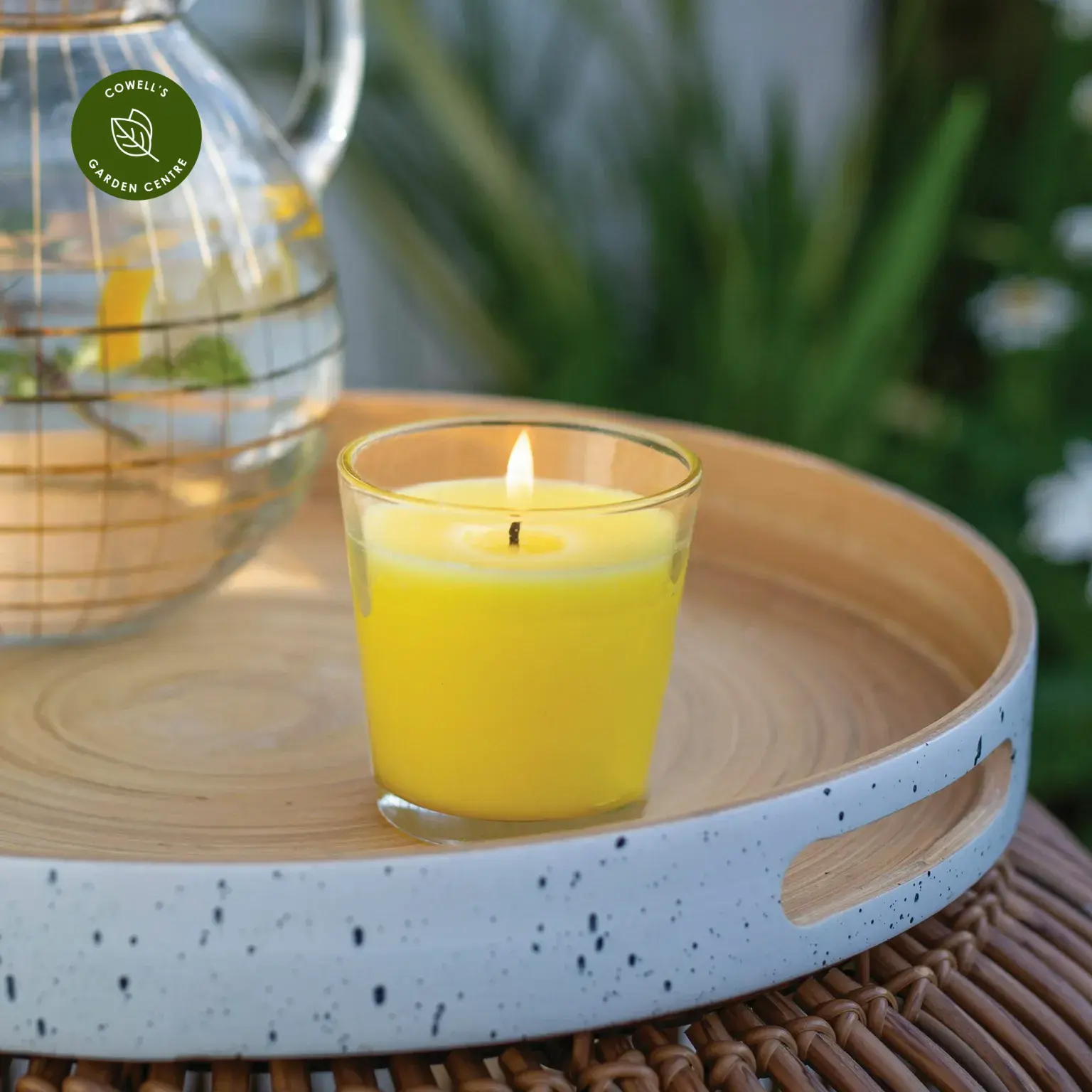 Bring a fresh, uplifting atmosphere to your outdoor space with this citronella glass jar candle. Designed to help keep your garden evenings enjoyable, it releases a crisp citrus fragrance while adding a warm, ambient glow to patios, tables, and outdoor settings.