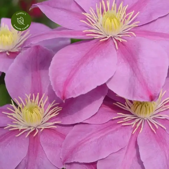 Clematis ‘Abilene’ is a compact, deciduous climber from the Boulevard® series, prized for its large, bright pink flowers with a soft central stripe and golden-yellow stamens. Free-flowering and reliable, it produces an abundance of blooms from late spring through summer, even on young plants.