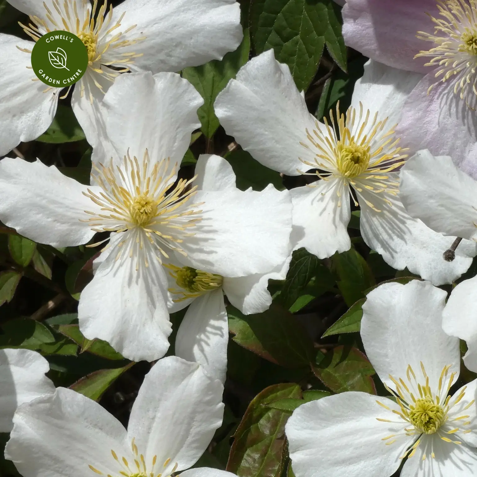 Clematis 'Spooneri' is a vigorous deciduous climber with scented white flowers that appear in late spring. The star-shaped blooms have prominent golden stamens and a light fragrance, standing out beautifully against fresh green foliage. Perfect for quickly covering fences, walls, pergolas or scrambling through trees. A low-maintenance, early-flowering clematis.