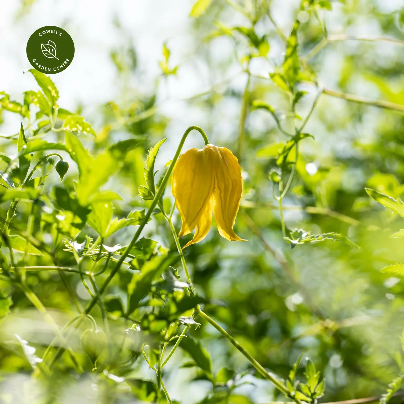 Clematis orientalis 'Bill MacKenzie' is a vigorous, late-flowering clematis renowned for its masses of nodding, bright yellow lantern-like flowers. Blooming from midsummer through to early autumn, the cheerful blooms are followed by silky, silver seedheads that provide additional interest well into winter. Its finely divided green foliage creates a light, airy backdrop, making it a standout feature when grown through trees, over fences, or across pergolas.