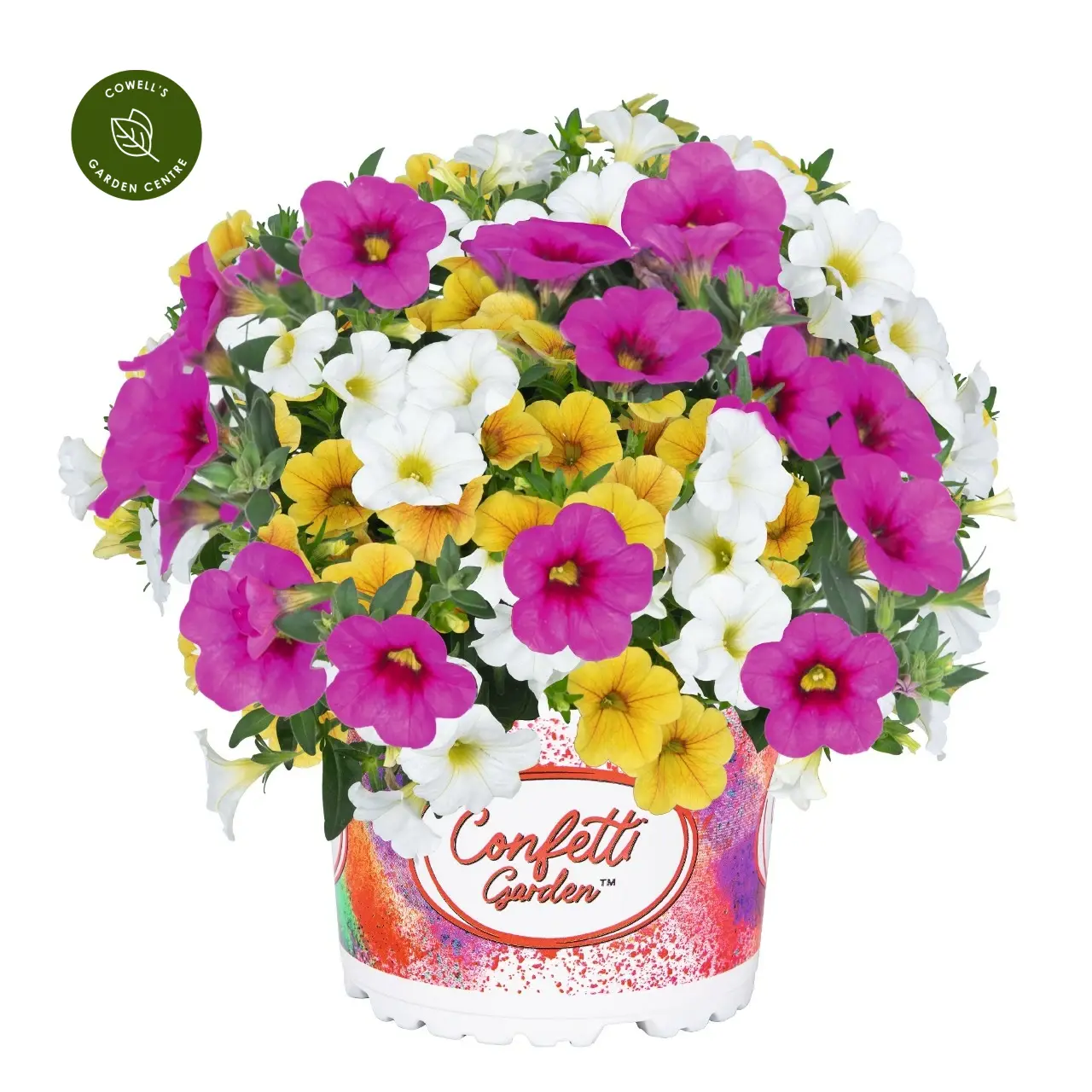 Confetti Garden™ Hawaiian Hana is a bright and uplifting pre-planted combination featuring vibrant pink, sunny yellow, and crisp white blooms. The cheerful mix creates a lively, balanced display full of summer colour.