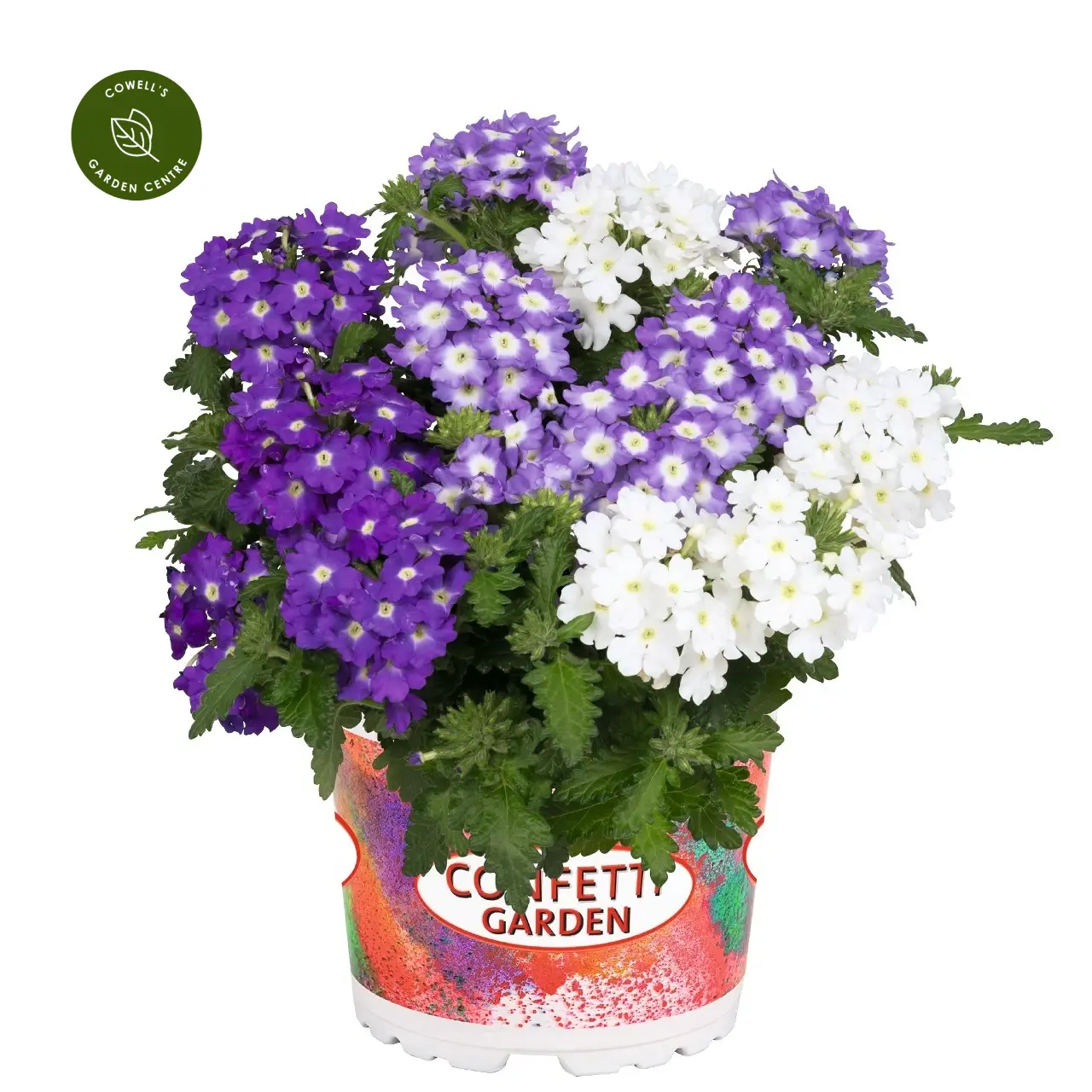 Confetti Garden® Linda Sky is a beautifully balanced mix of cool blue and crisp white verbena, creating a soft, calming display with a fresh, uplifting feel. The tightly packed flower clusters form a full, rounded canopy of colour, giving instant impact.