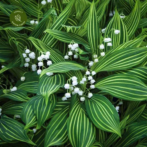 Convallaria majalis 'Albostriata' is a beautiful variegated form of Lily of the Valley, valued for its elegant green leaves striped with creamy white. In late spring, it produces delicate, nodding, bell-shaped white flowers with a sweet fragrance.