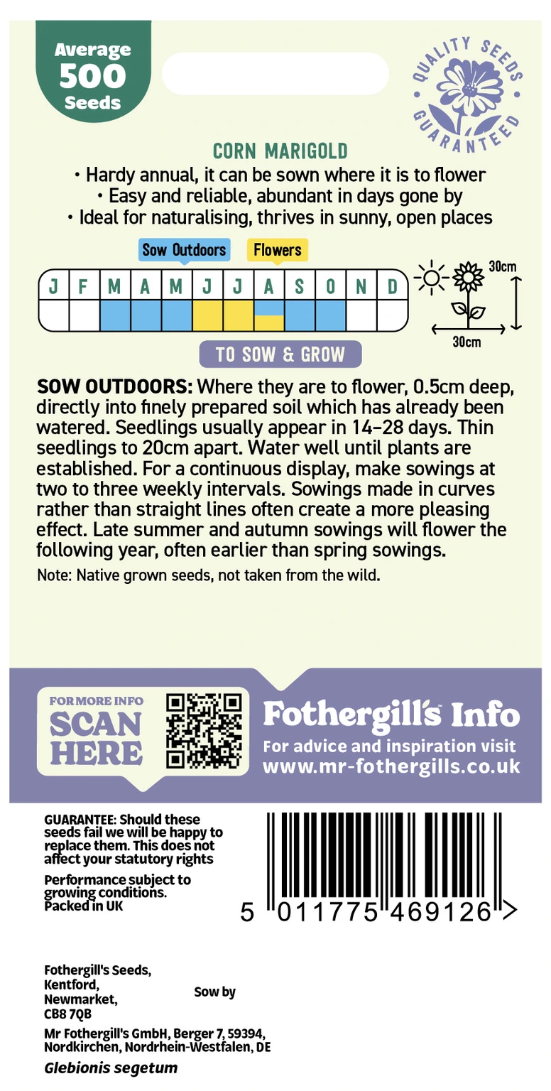 Easy to grow but rare in the wild. Can be found growing wild in cornfields, verges and on waste lands. Ideal in annual borders and ‘wild’ areas.