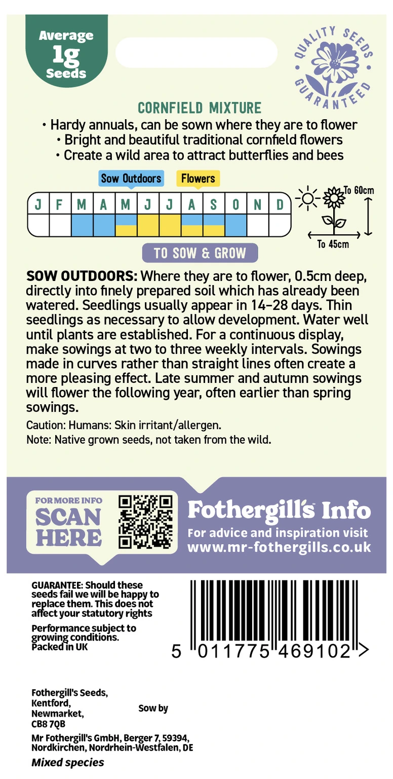 A traditional show of summer colour. Can be found growing wild in cornfields, verges and on waste lands. Ideal in annual borders and ‘wild’ areas.