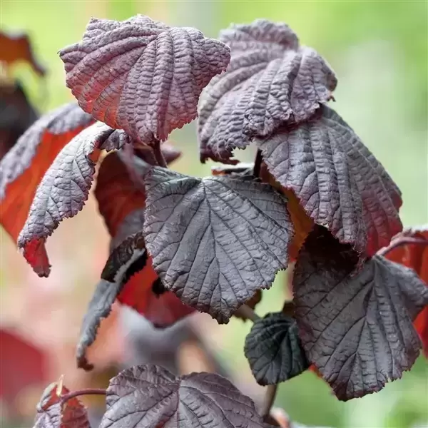 Corylus 'Red Majestic' is a beautiful unusual variety with distinctive 'corkscrew' branches which bear long purple catkins in late winter and early spring. Deep plum-purple foliage in early summer, becoming green-tinted as the leaves mature, then bright purple in autumn, before falling to reveal the corkscrew branches. This striking and dramatic deciduous shrub makes an excellent focal point in borders or winter gardens and thrives in most soil types.