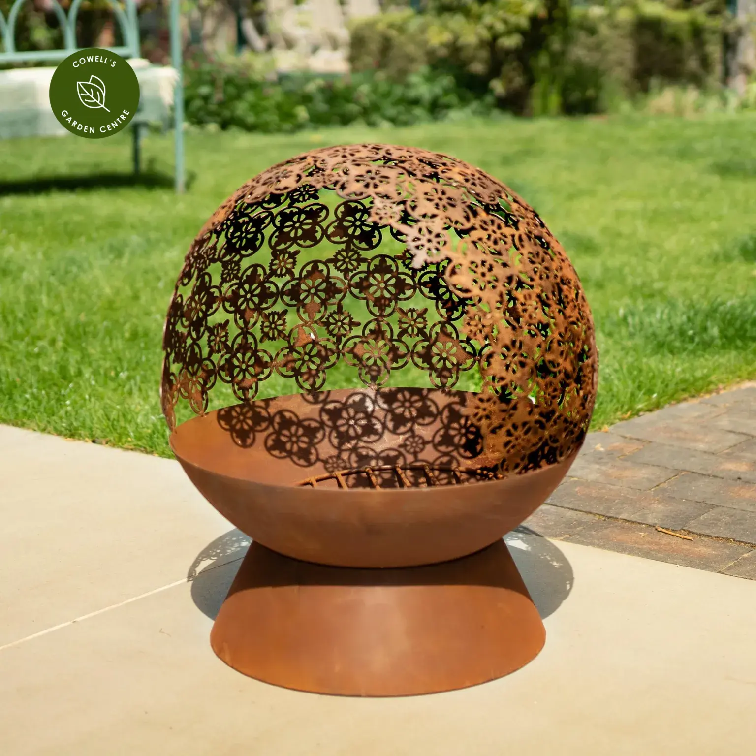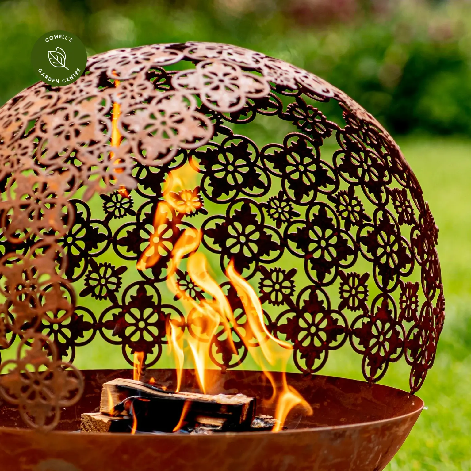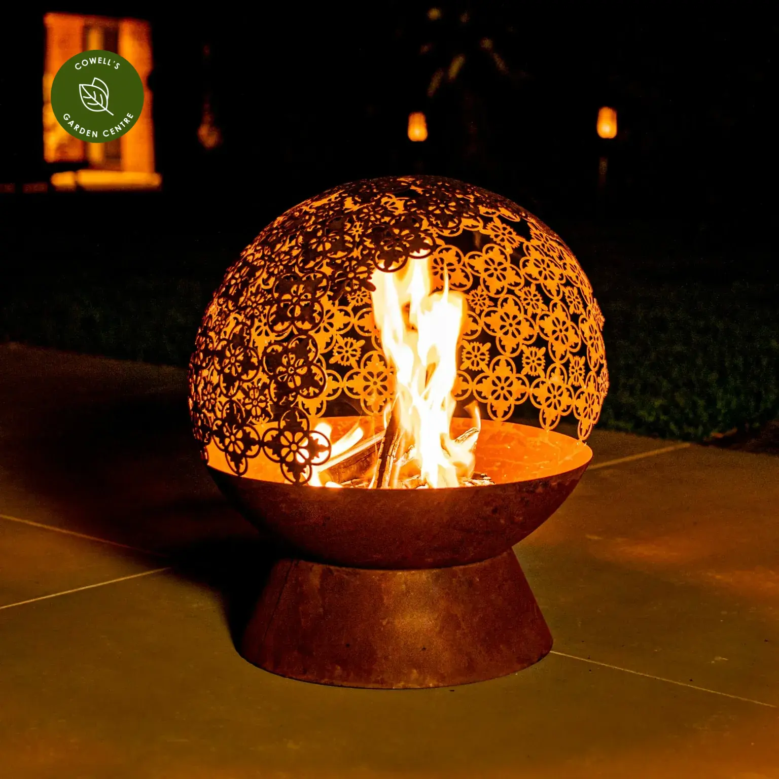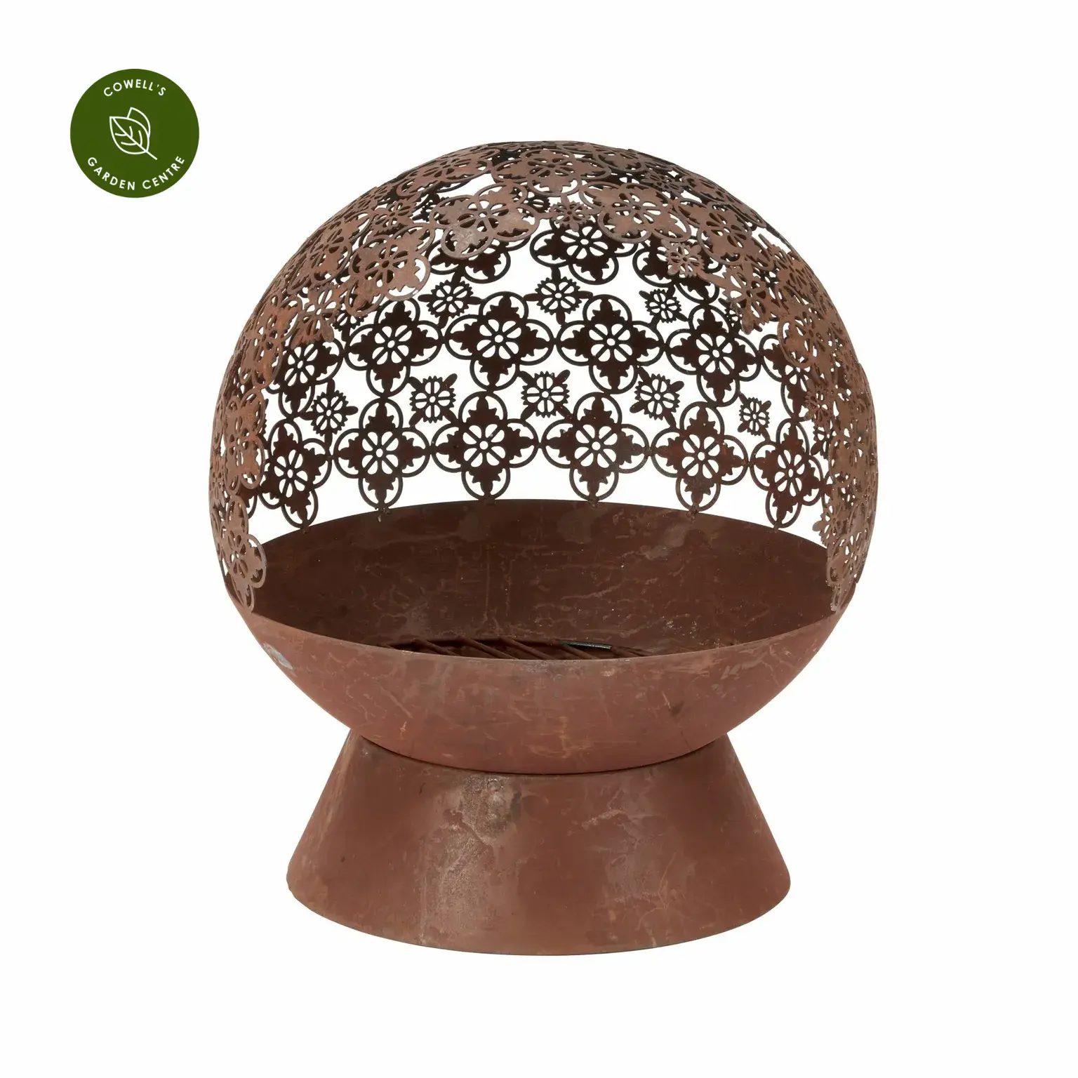 Keep the cold at bay with this eye-catching Moorish-style fireglobe, designed to create warmth and atmosphere in any outdoor space. The intricate hand-welded damasque pattern casts beautiful, dancing shadows when lit, making it a striking focal point for evenings in the garden.