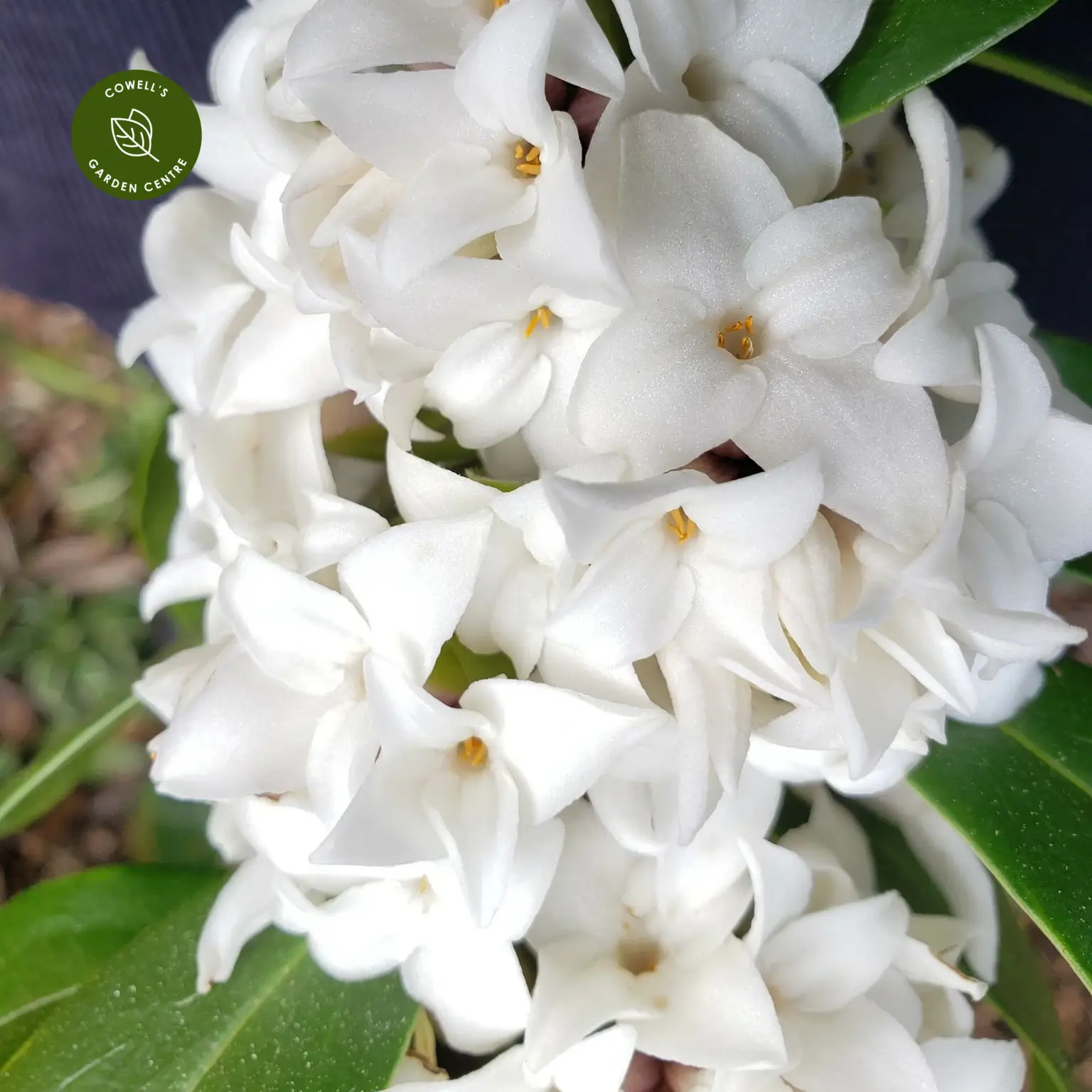 Daphne 'Perfume Princess White'™ is a unique and enchanting evergreen shrub celebrated for its long flowering season and exquisite fragrance. It’s the earliest and longest flowering of all Daphnes from winter to late spring, with one of the sweetest fragrances, and is prized for its profusion of pure white blooms appear along the stems, releasing a powerful scent that fills the garden. This is not just any ordinary Daphne! Unlike many Daphnes, this variety flowers not only at the shoot tips but also along the stems, ensuring a heavier display and extended season of interest.