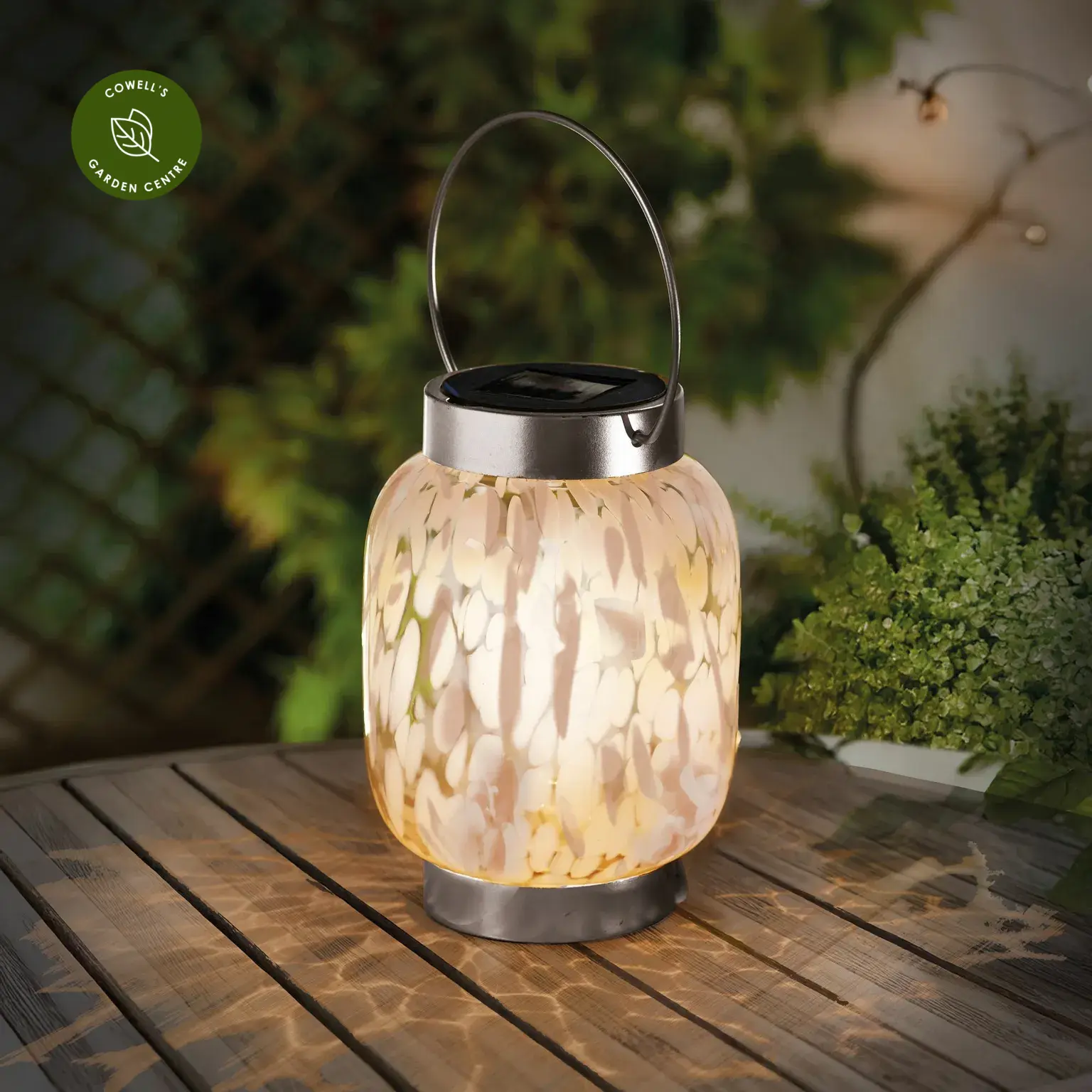 Add a soft, decorative glow to your outdoor space with this GlassArt Solar Lantern. Featuring a confetti-style glass design, it casts a gentle patterned light across surrounding surfaces. Simply hang from trees, hooks or pergolas, or place on tables and patios for an easy, elegant lighting feature with no wiring required.